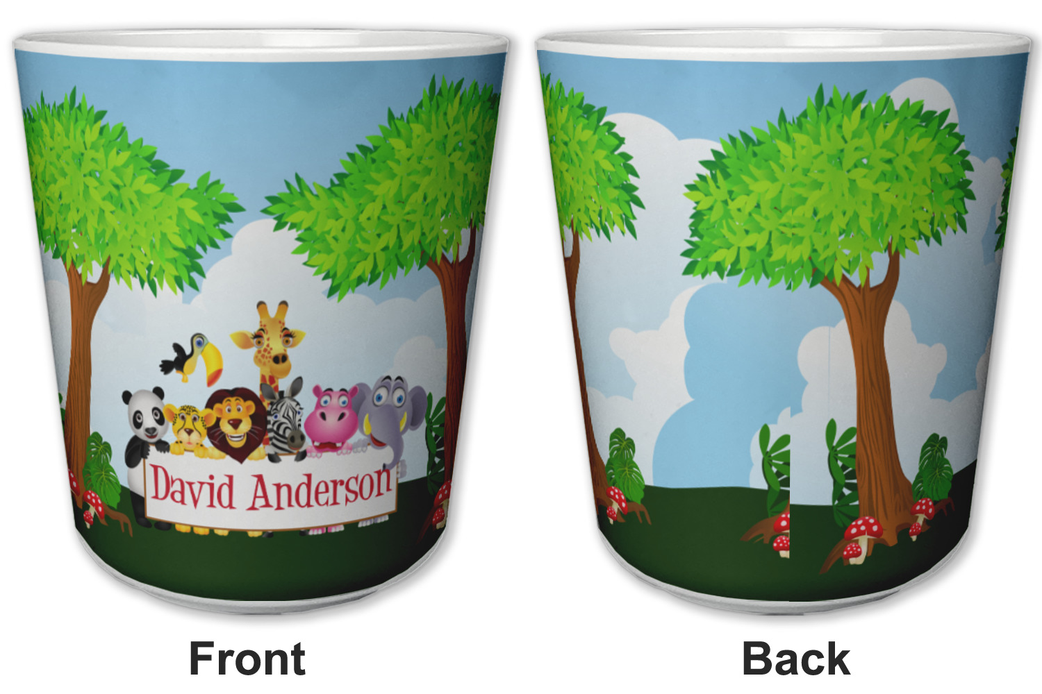 Made from a durable plastic, these tumbler cups are strong enough to withstand daily use and are perfect for young children. Each of these personalized plastic cups holds 6 ounces and measure at approximately 3" x 3" x 3.25". Place them in the bathroom as a rinsing cup, or give them to your kids during mealtimes. These 6 oz. plastic cups are BPA free, microwave and dishwasher safe, for your convenience. Your personalized design is displayed across the entire outside of this cup, while the inside is white in color to make your customization really stand out.