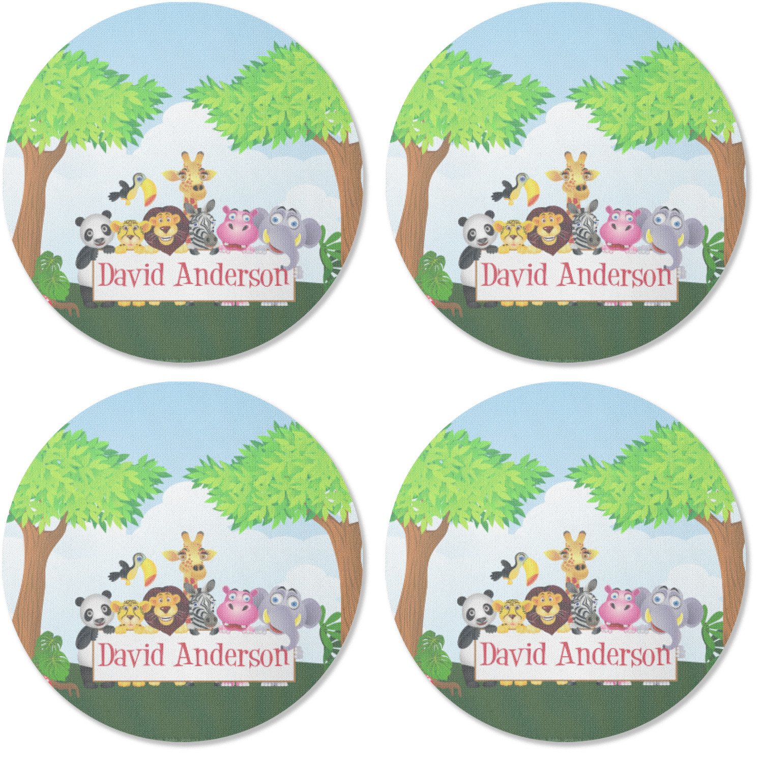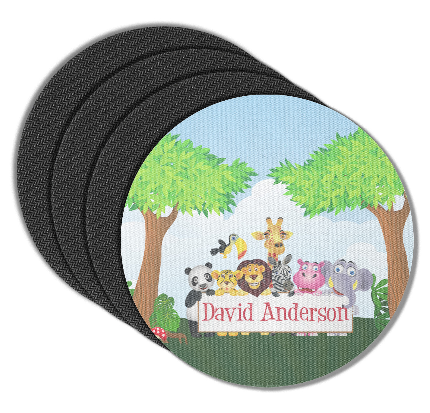 These drink coasters have a smooth, polyester top and a textured, rubber backing on its bottom. The non-slip rubber backing underneath works to keep any spills at bay. At 4 by 4 by 0.25 inches thick, these custom coasters are a suitable size for most drinkware. Your personalization is displayed atop the face of the cup coaster. We sell these rubber coasters in two different shapes: square and round. You can buy each shape as singulars or as a set of 4.