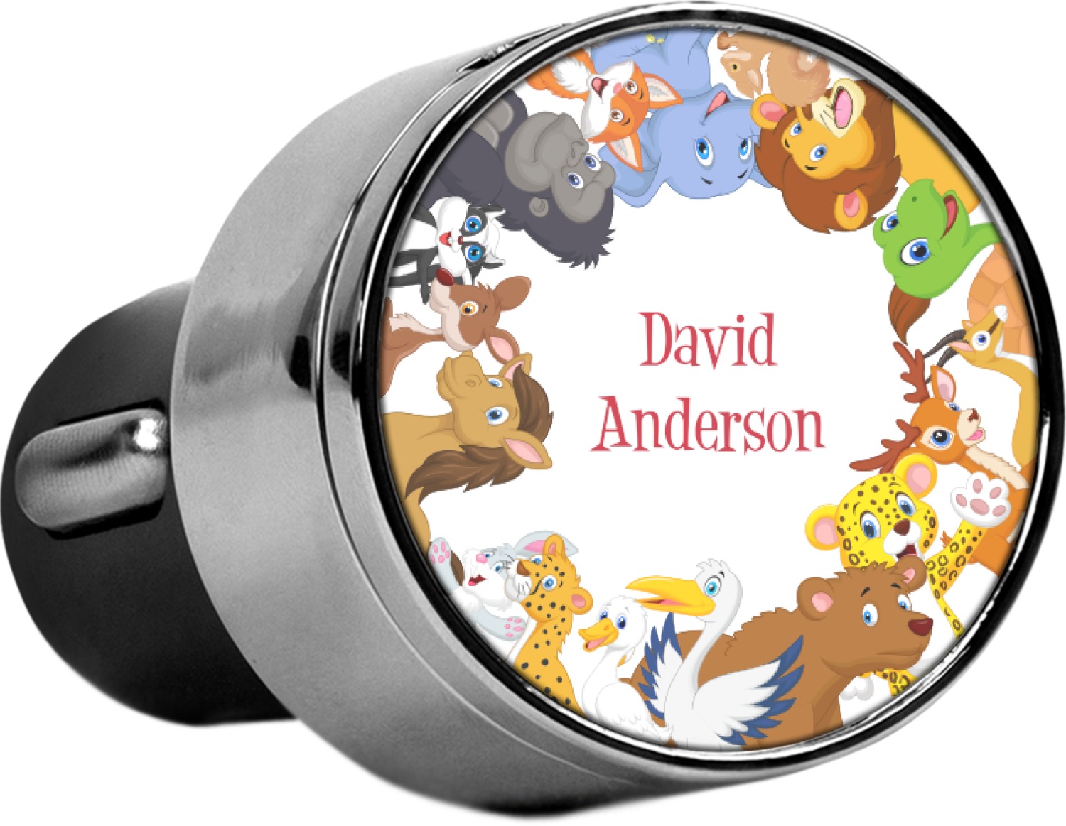 This car charger adapter converts your cars bland cigarette lighter into a decorative, personalized, and operational USB charging port. Made of solid, silver-plated metal, these chargers feature a flip-open lid that both displays your customized design and conceals two USB ports. The metal lid of the USB car charger adapter is 1.5" in diameter and seals due to a small, ingrained magnet on both the charger and its lid. The cigarette lighter insert, itself, is colored black.