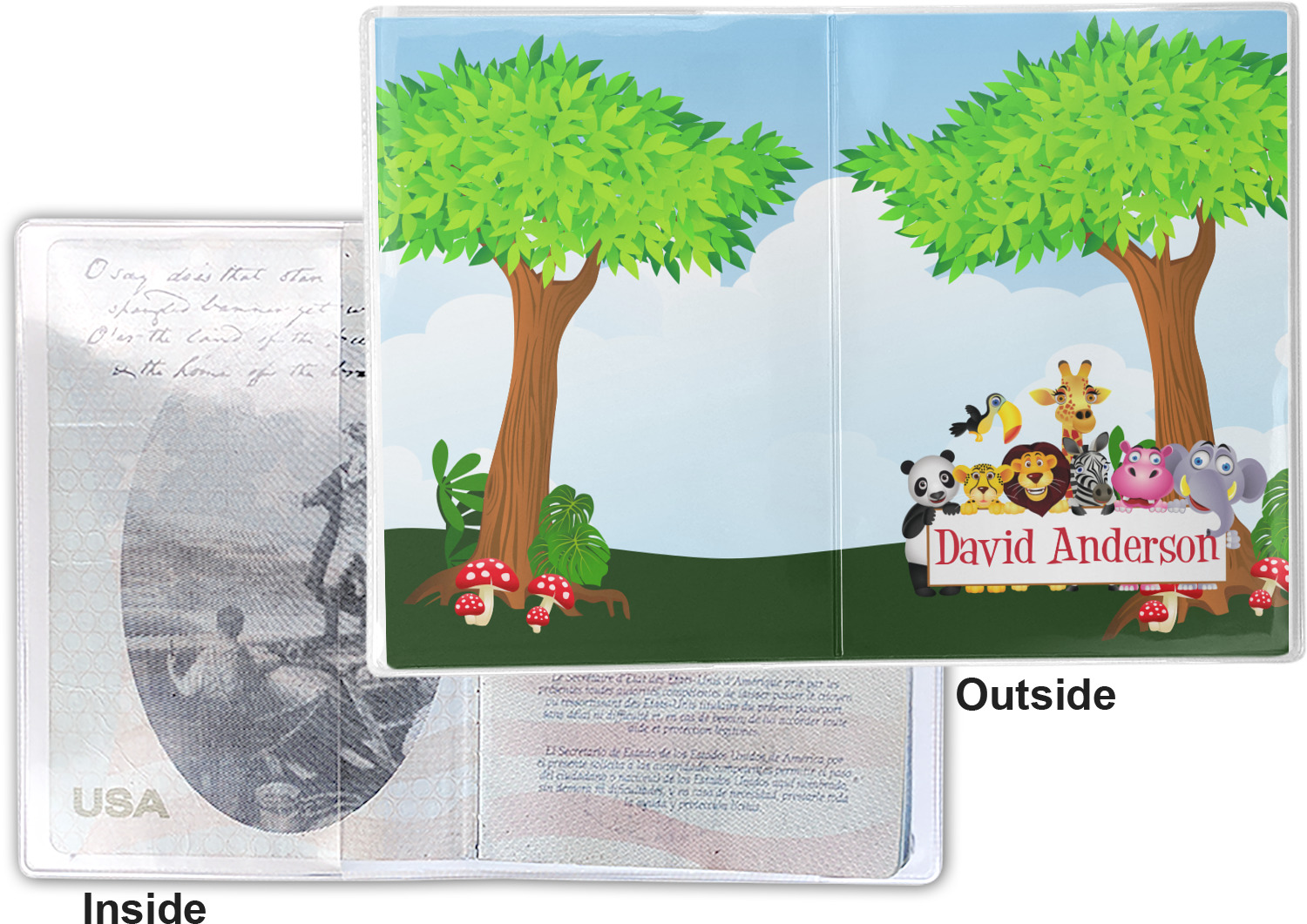 This cover is made of a sturdy clear vinyl with a personalized vinyl insert inside. There is a large and a small pocket on either side to hold the covers of your passport easily and firmly. The passport holder is approximately 7.5" x 5.25", the perfect size to snugly fit your passport. This slim cover is the perfect way to protect your passport without being one more bulky item you have to carry.