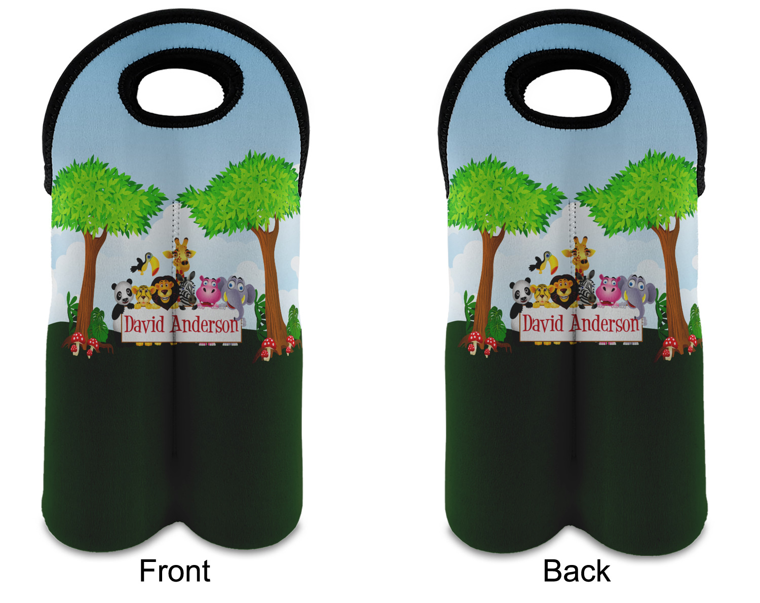 These tote bags are insulated to keep the bottles cold and have a stitched separation down the middle and double handles to keep the two bottles safe and secure during travels.