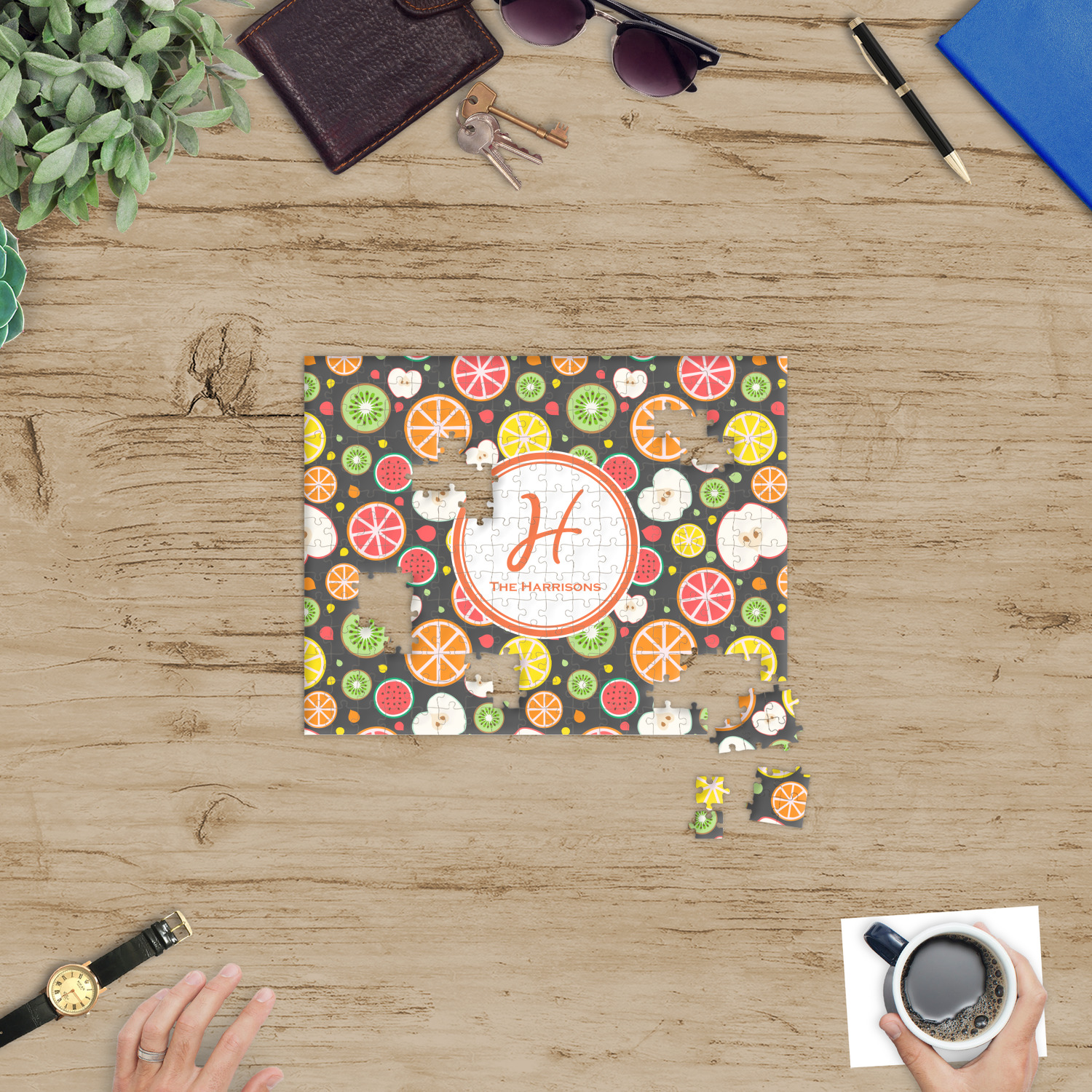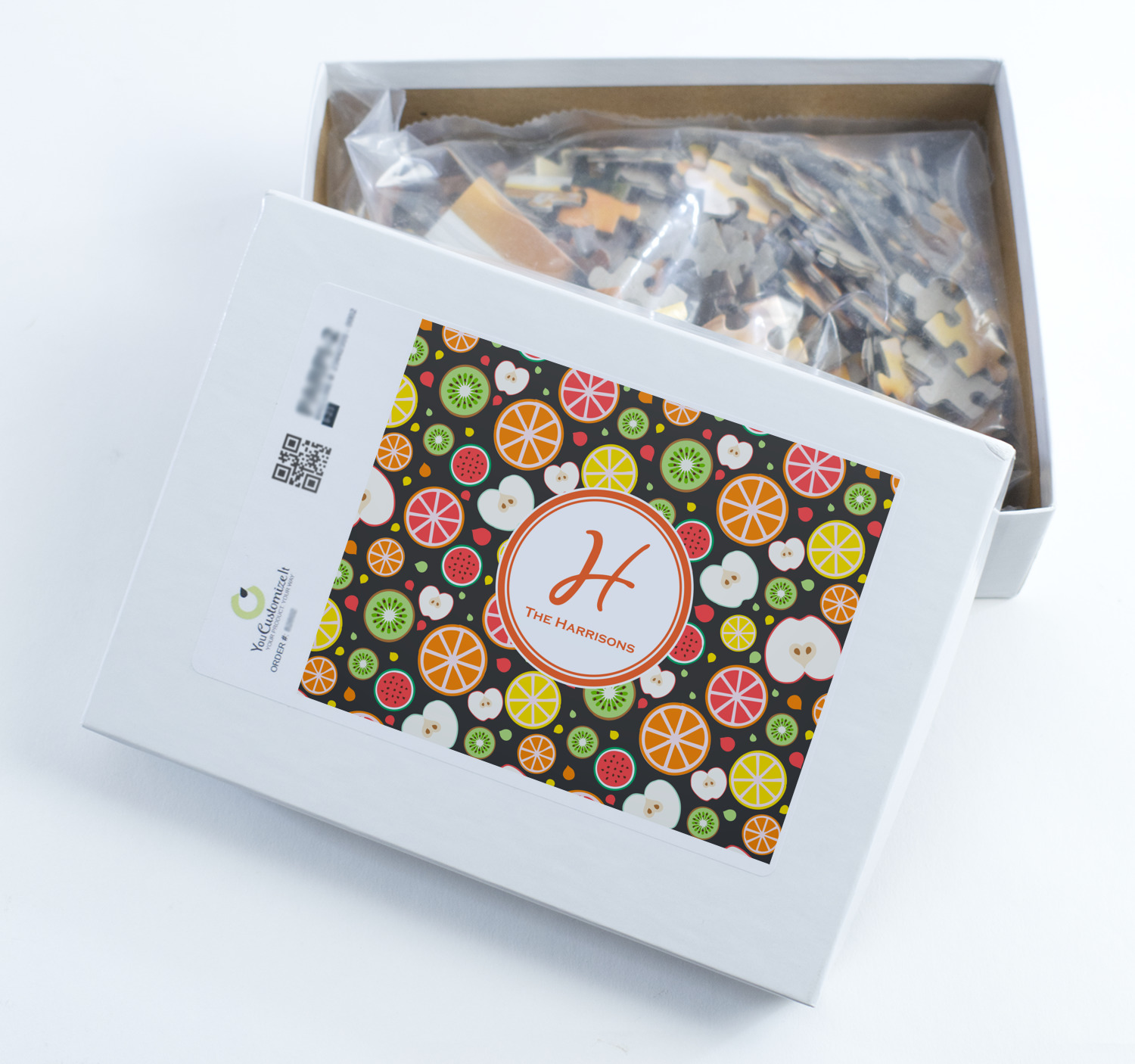 Depending on the look you are trying to achieve, you can add; a thematic pattern or background, with a photo in a frame and text or personalization to your puzzle. Basically if you can imagine it, you can design it!