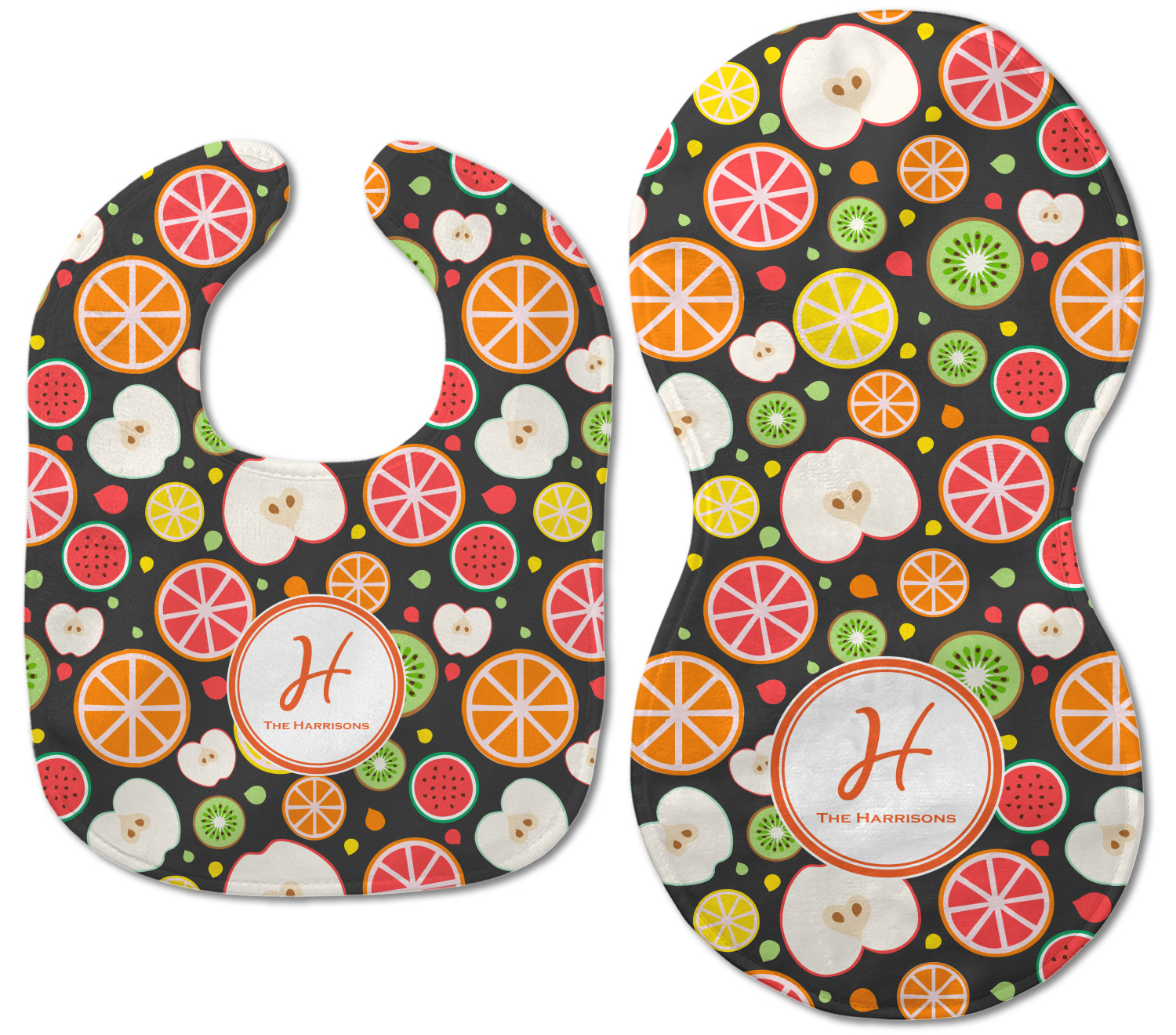 Both our baby bib and burp pad are made up of soft, microfiber velour with a cotton backing. The comfortable and plush material of our bib and burp set is perfect for both baby and parent. We print your design on the microfiber velour face fabric with baby safe ink on your customizable bib and burp cloth to ensure safety for the little one! Our drool bib also comes with a Velcro clasp for safe and easy wear while the burp cloth is a unique peanut shape that perfectly hugs over the shoulder.