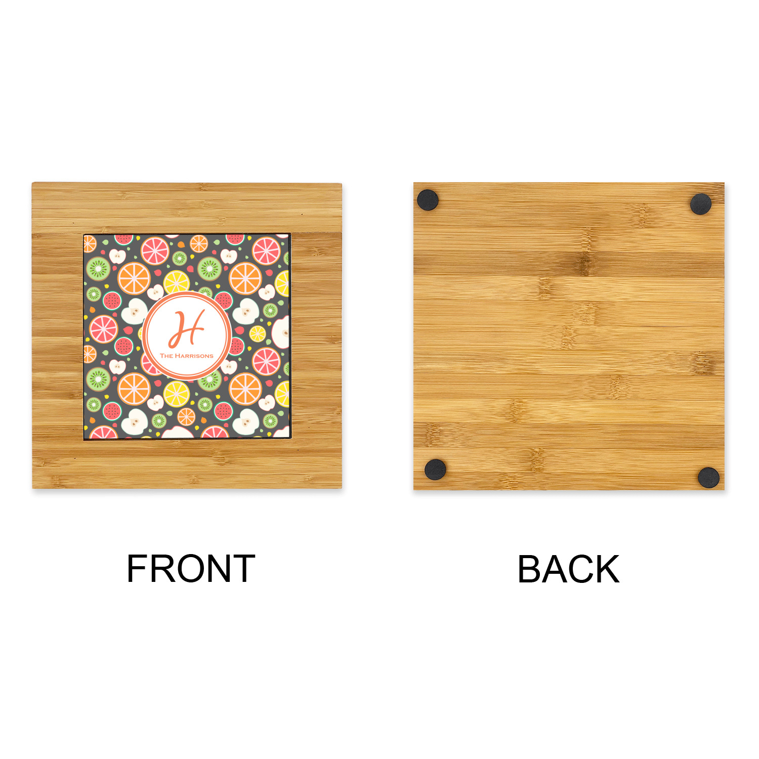 The center is highlighted by a 6in ceramic tile that is printed with the design of your choice. The tile sits slightly higher than the bamboo to ensure the majority of the heat stays on the tile not on the bamboo.
