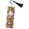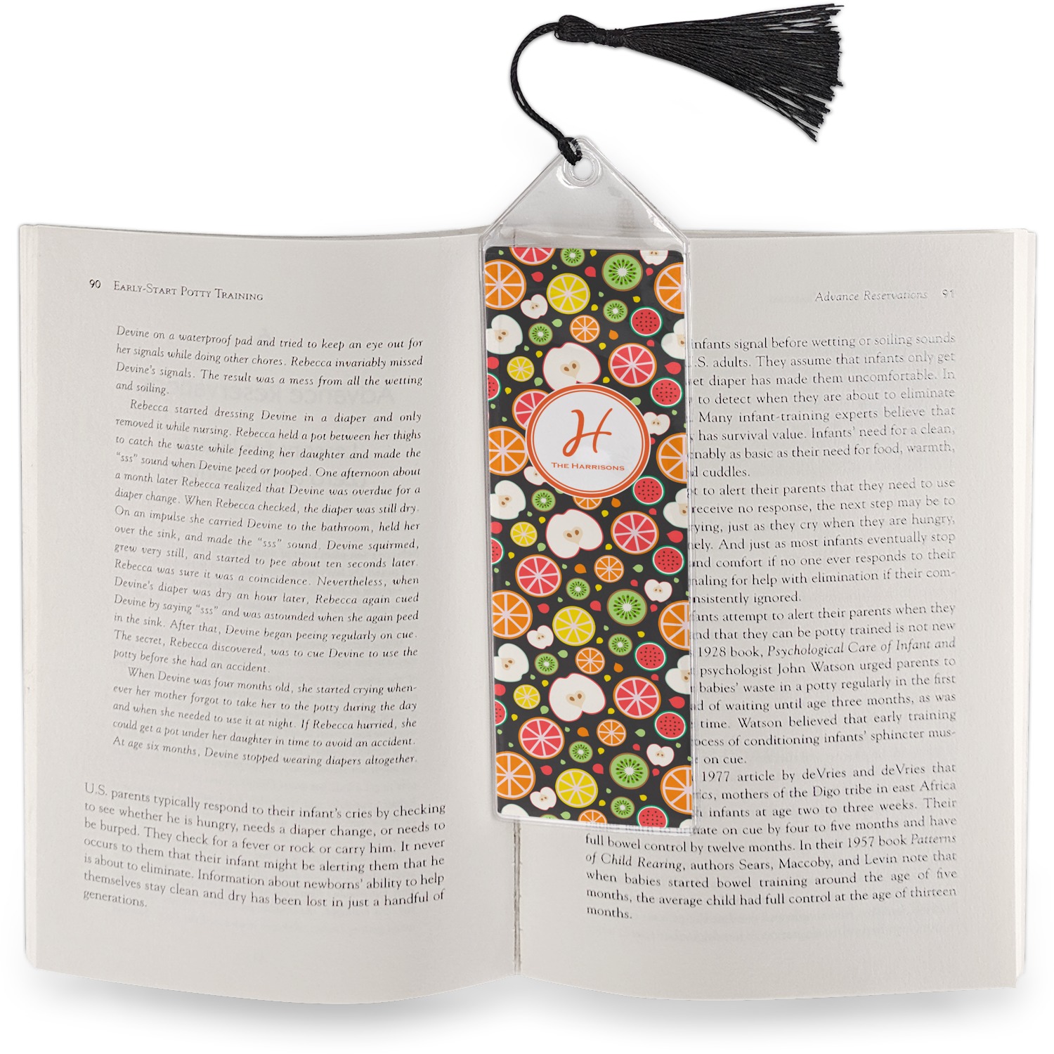 Your personalized bookmark is made of a sturdy, clear vinyl, and is approximately 7.5" x 2.25". We display your personalization on vinyl inserts that are placed on both sides. Accompanying each book marker is a black, fringe tassel that attaches to the reinforced, triangular header.