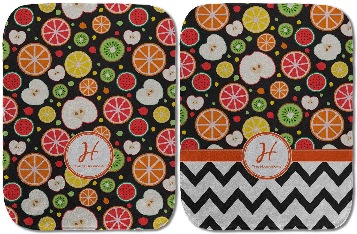 Choose your baby burp cloth from our two styles - Fleece (rectangular) or Microfiber Velour (peanut shape). The lightweight and absorbent design makes each burp cloth multipurpose; use them as a burp pad, a lap pad, a changing table, or a spare cloth to clean up any baby mess. Your customization is displayed across the front with baby-safe ink to ensure extra comfort with a white backing.