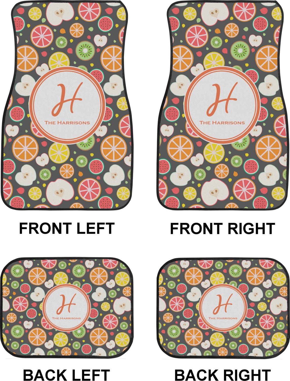 We craft our auto floor mats mats from polyester, apply a black finish to the edges, and lined at the bottom to prevent slippage. These mats protect your floors from grass, mud, and any accidental spills. We display your personalized design on the front face of each mat. The sizes of these car floor liners are standardized to provide a versatile fit for all vehicles. The front rows car mats measure at 17 by 26.5 inches, while the back rows measure at 17 by 13 inches. We sell three packages of car floor mats. You can purchase a pair of front row car mats, a pair of back row car mats, or a set of front row and back row car mats. To make an informed purchase, we recommend measuring the surface area of your car floors.