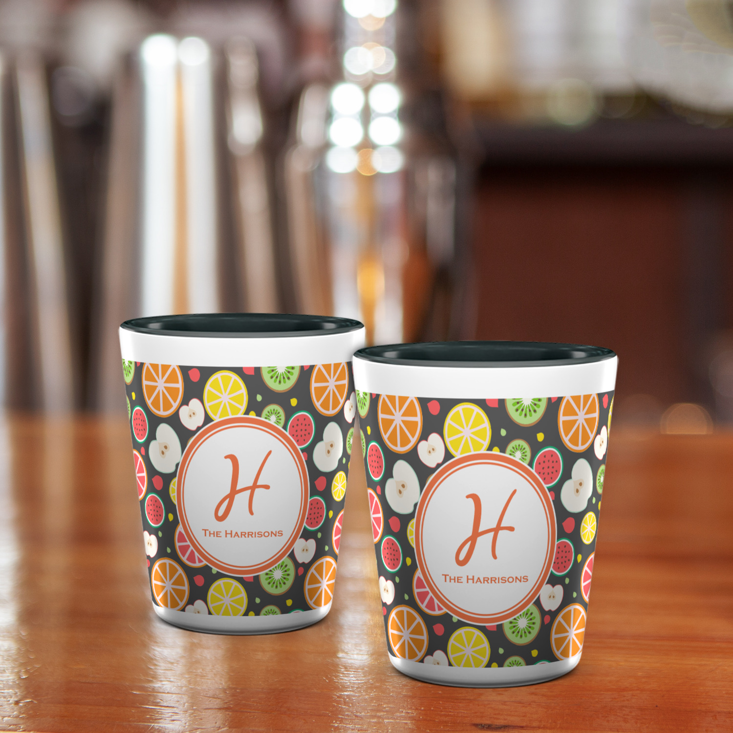 Made from ceramic these shot glasses are printed in full color with the design of your choice. These are a standard 1.5oz size and stand 2.25" tall. Available in a full white ceramic or a two-tone with a black color inside the shot glass. Buy a single or a set of 4, all of which can be designed separately to get you just what you want and need.
