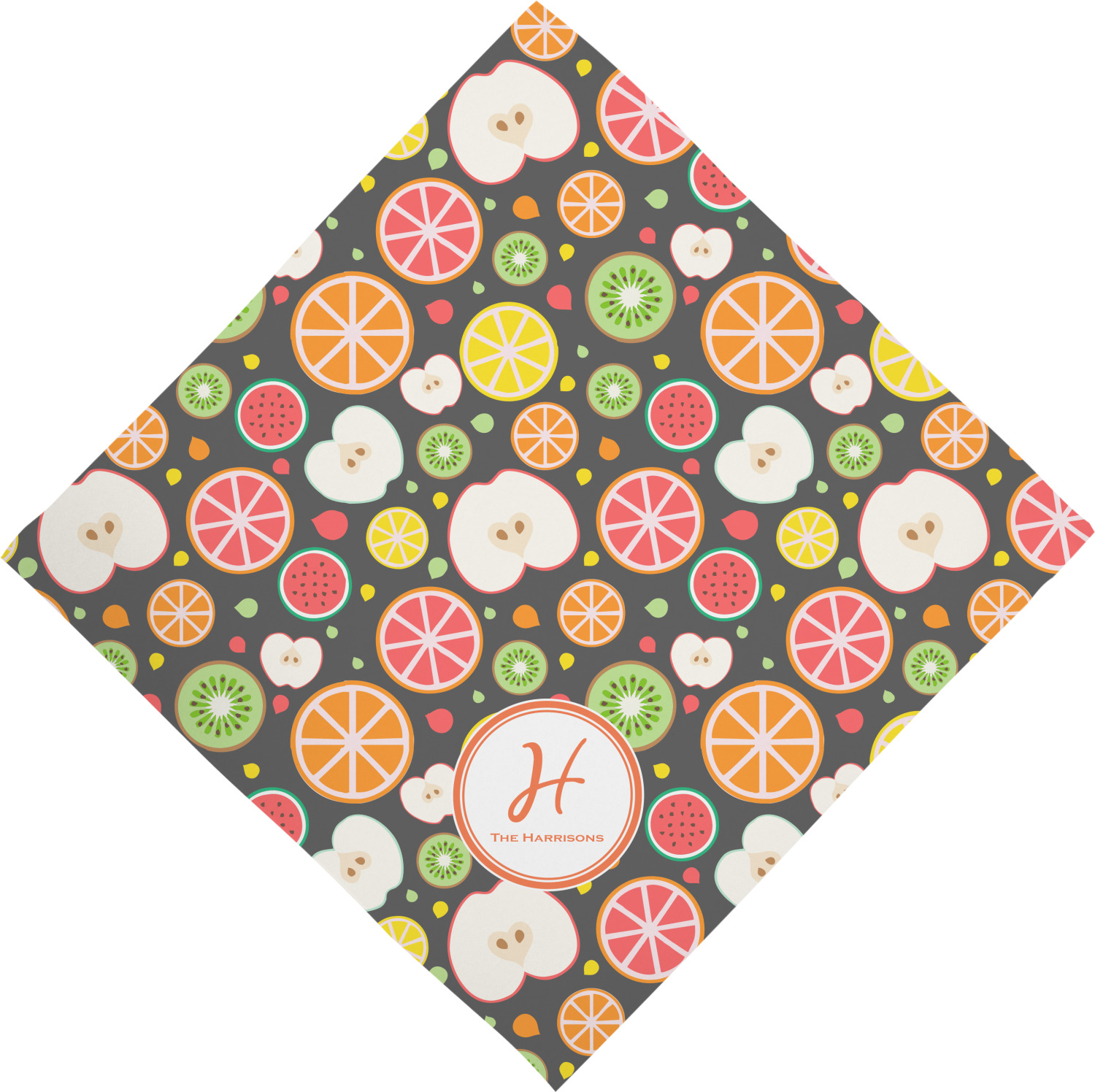 This beautiful pet bandana really is the perfect accessory. It is made from a silky feeling polyester and measures at approximately 23" x 23". Your personalization will be printed on a diagonal, so that you are able to read the personalization when folded into a triangle. This bandana fits best on large dogs, but can be folded smaller if there is no personalized text to fit smaller pets.