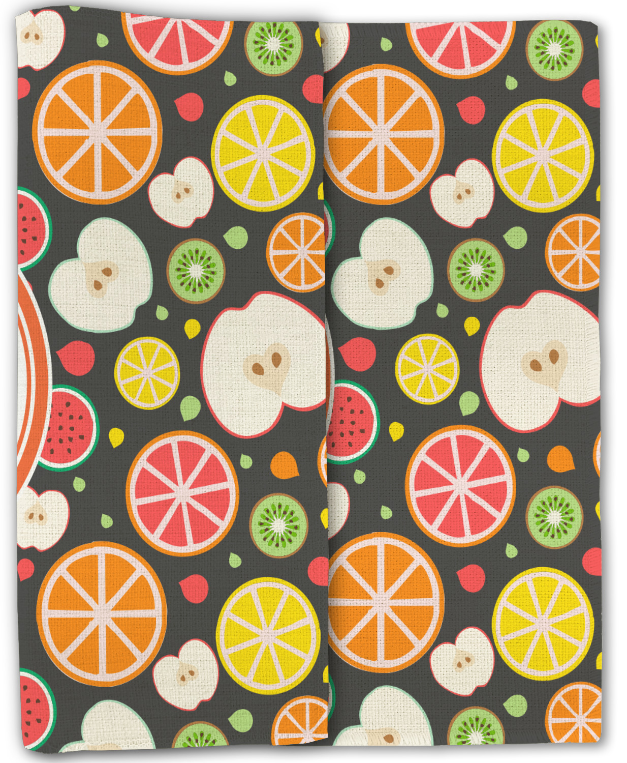 This beautiful Apples & Oranges design is part of our fruits and vegetables collection. This design features a plethora of fruits in multiple colors and sizes, sliced down the middle. The background on this design is dark gray; however you have the option of selecting any color.