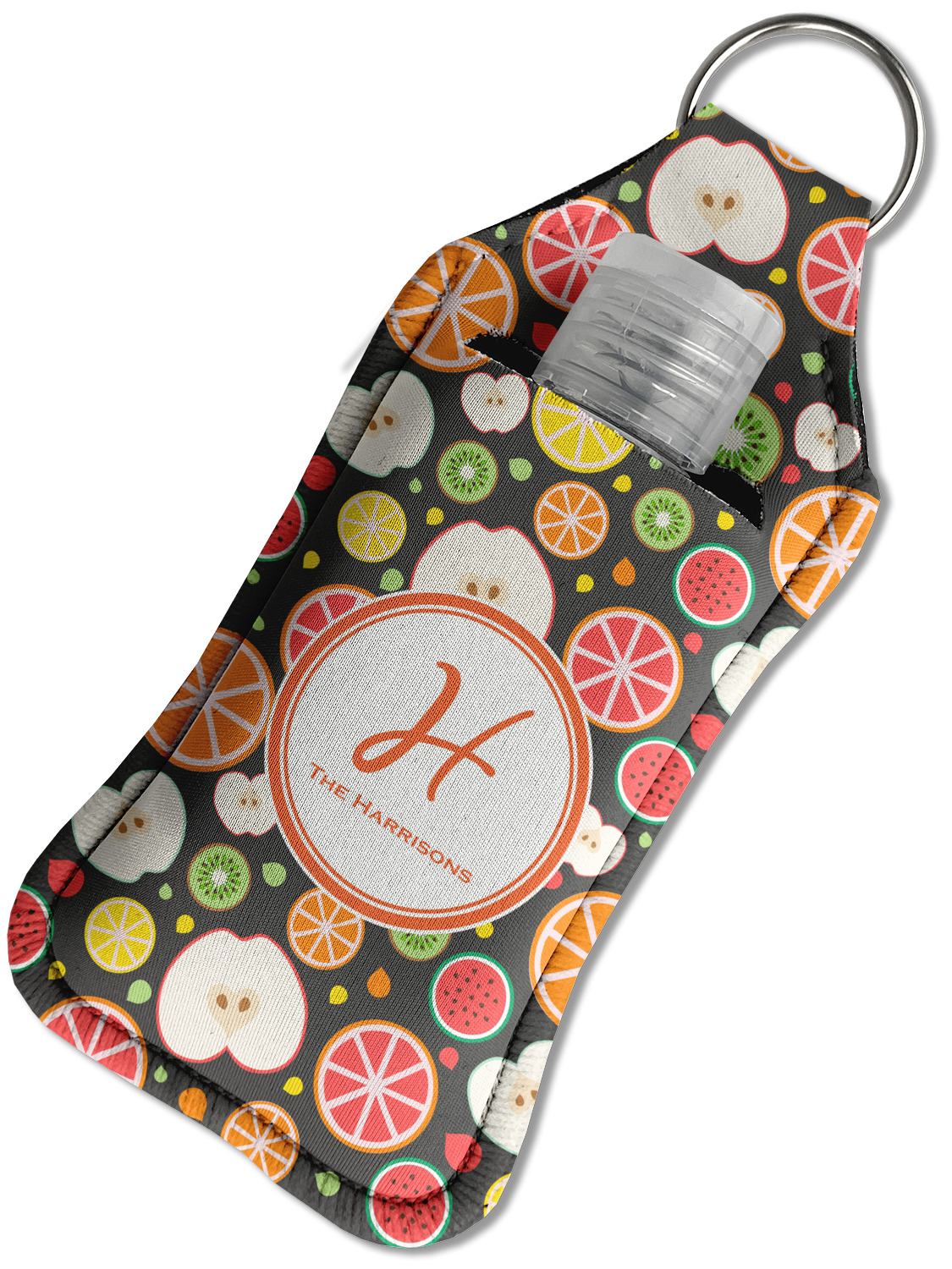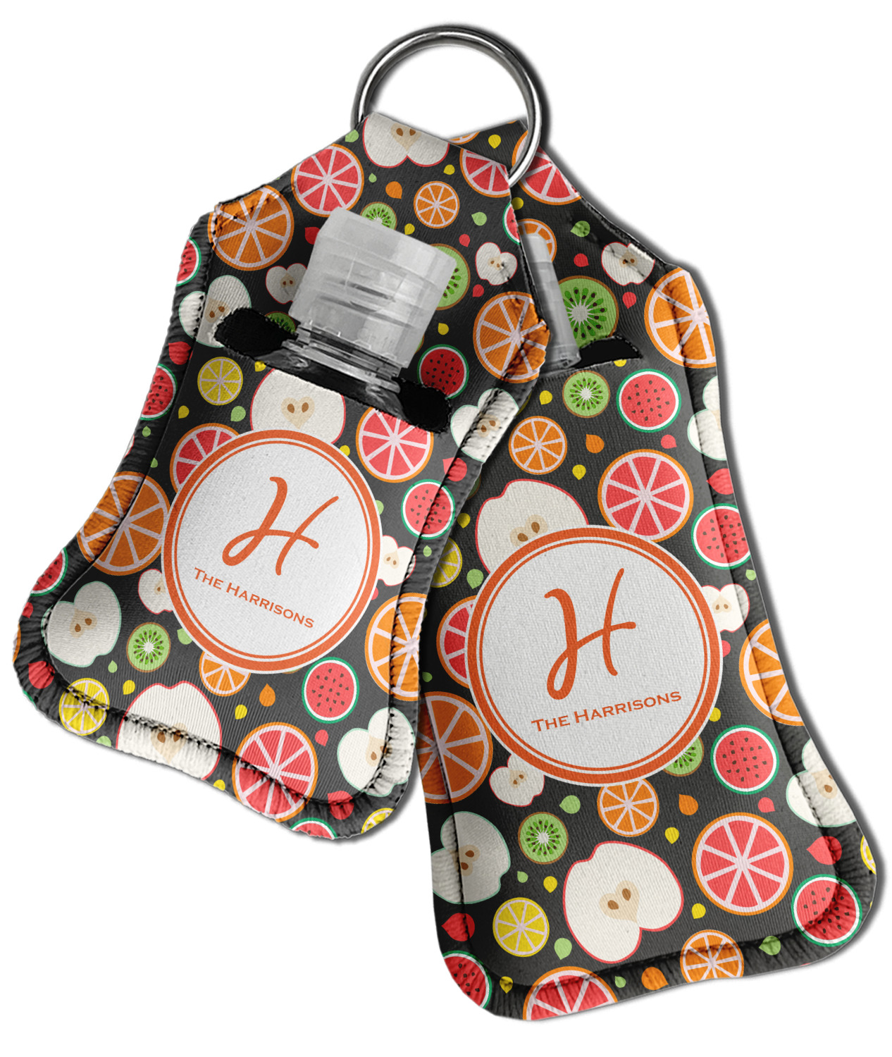 Each hand sanitizer holder comes with its own empty travel-sized, refillable hand sanitizer sure to fit snug in your customized sanitizer case! Our hand sanitizer cases are a durable, yet soft neoprene material sure to last any daily activities or travel agenda. Customize and personalize a hand sanitizer bottle holder with one of our two sizes - small (4.25" x 2.25") or large (5.5" x 2.5"). Each travel sanitizer holder comes with a keyring for attachment on bags, keys, or more!