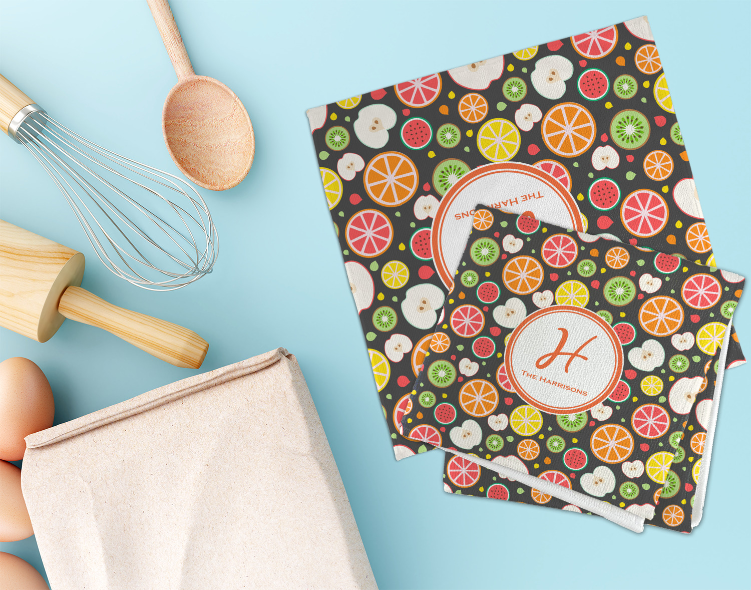This beautiful Apples & Oranges design is part of our fruits and vegetables collection. This design features a plethora of fruits in multiple colors and sizes, sliced down the middle. The background on this design is dark gray; however you have the option of selecting any color.