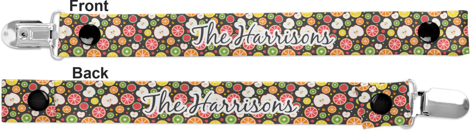 This personalized pacifier clip is the ideal size and measures at approximately 7.5 inches in length, when either end is snapped closed. On one end, you'll find a snap button. This button of your baby's pacifier holder is what can be attached to their pacifier to hold is securely in place. Simply open the snap, slip it through the pacifier opening, and snap it back into place. On the opposite end of this baby pacifier holder, you'll find a metal clip that can secure to a baby's collar or sleeve. This clip ensures that the strap stays in place, and that your baby's pacifier is always on hand.