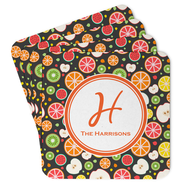 These coasters are perfectly sized for just about any drink being a 4"in square. The paper construction is a thick heavyweight 80 point pulpboard perfect for absorbing the condensation on the outside of your glass.