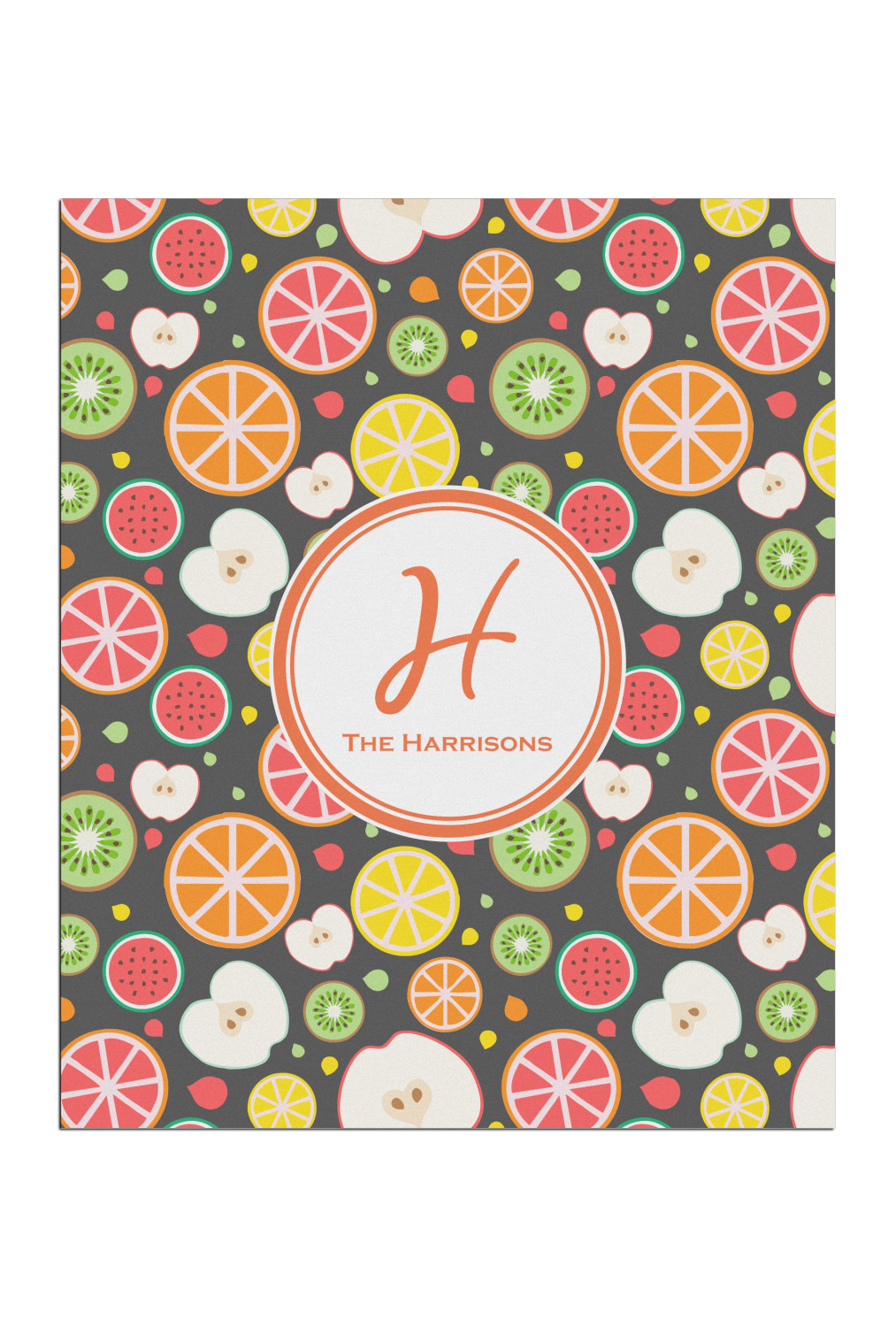 This beautiful Apples & Oranges design is part of our fruits and vegetables collection. This design features a plethora of fruits in multiple colors and sizes, sliced down the middle. The background on this design is dark gray; however you have the option of selecting any color.