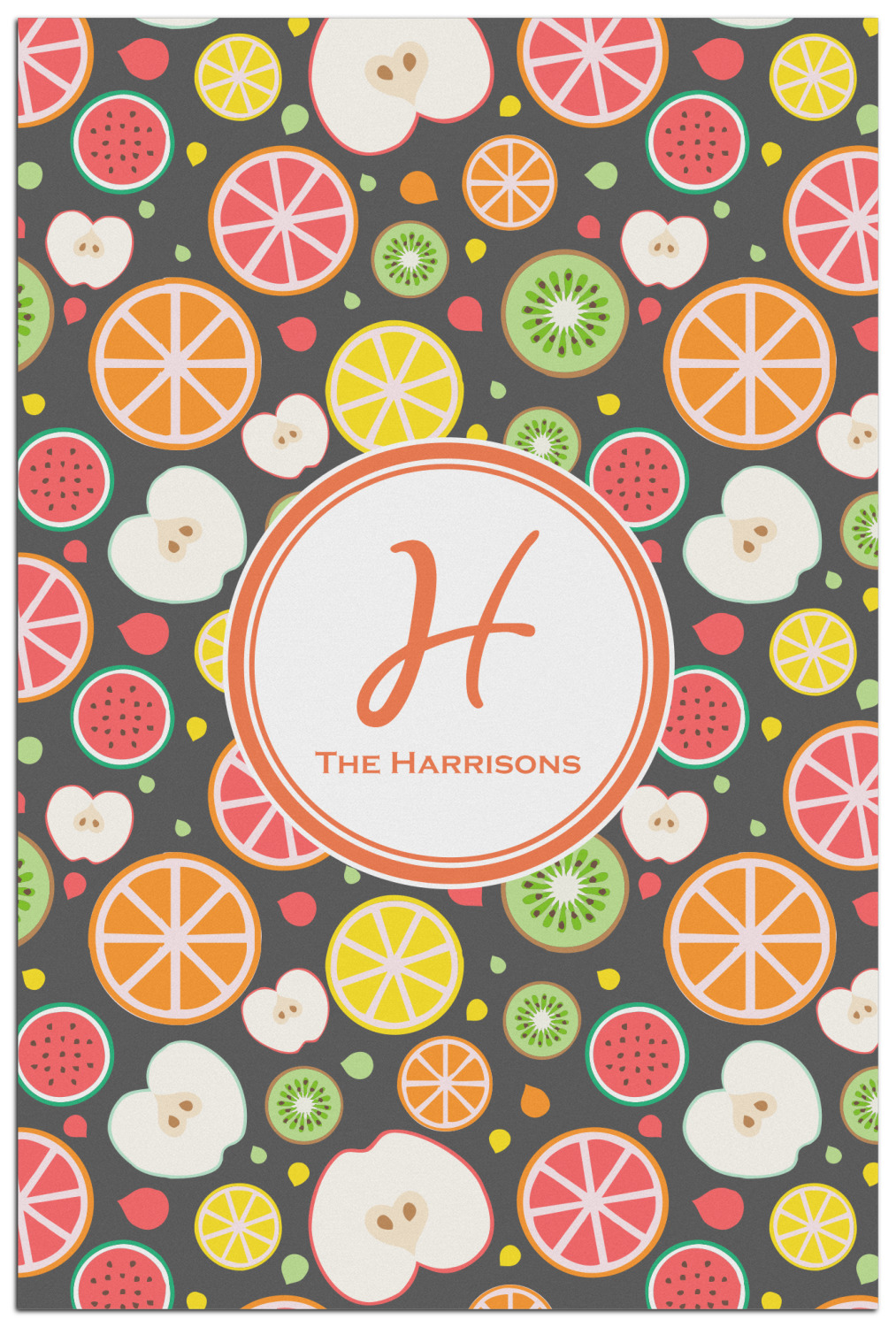 This beautiful Apples & Oranges design is part of our fruits and vegetables collection. This design features a plethora of fruits in multiple colors and sizes, sliced down the middle. The background on this design is dark gray; however you have the option of selecting any color.