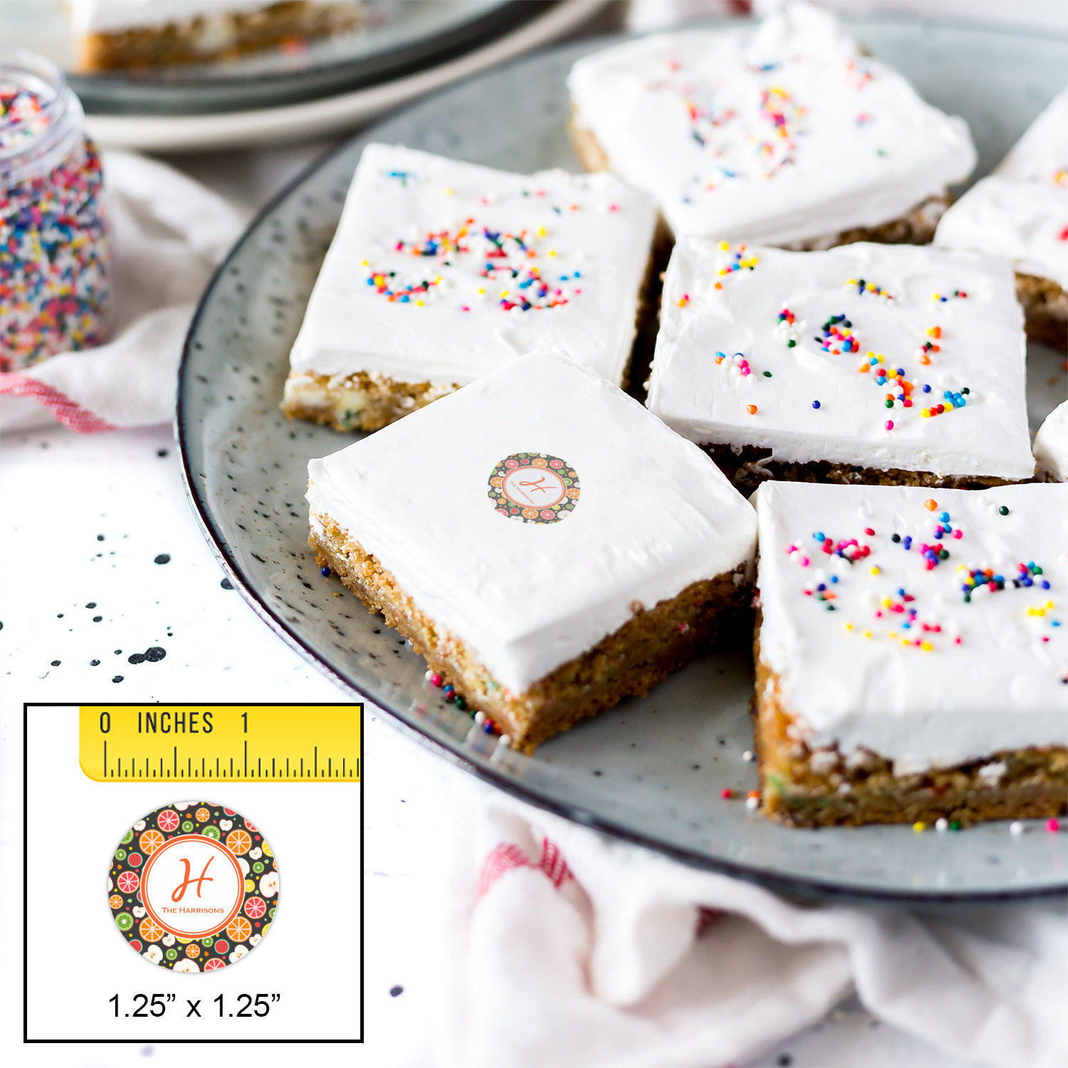 The label style is simple circle label, which works really well when the personalization choice is a name and initial or a monogram.