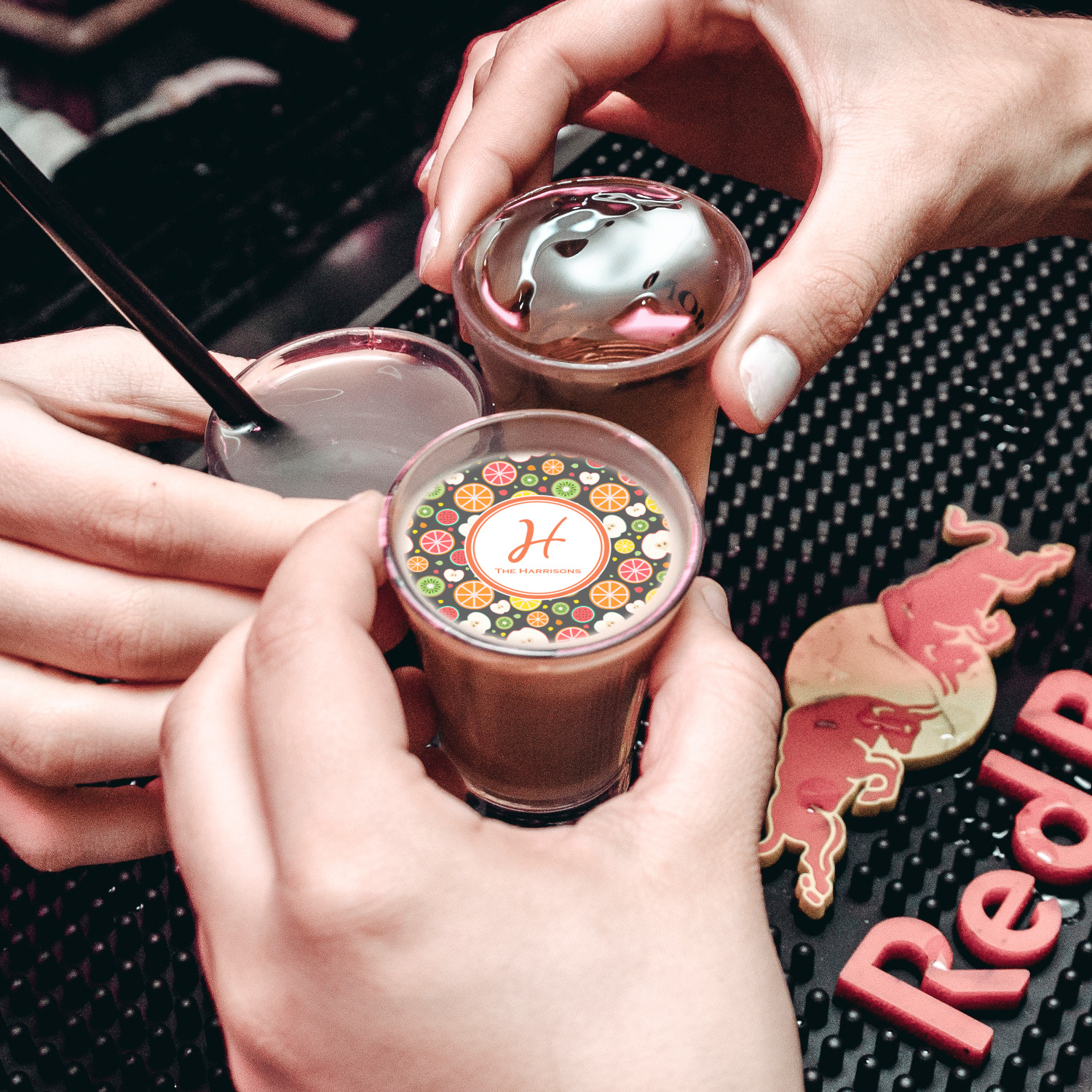 Your customized drink toppers can be placed on top of cold or hot beverages such as cocktails, beer, wine, champagne, soda, water, ice tea, nitro cold brew, milkshakes, smoothies to hot tea, coffee, lattes, espressos etc. It is recommended that these toppers be placed on top of a foam layer for best results.