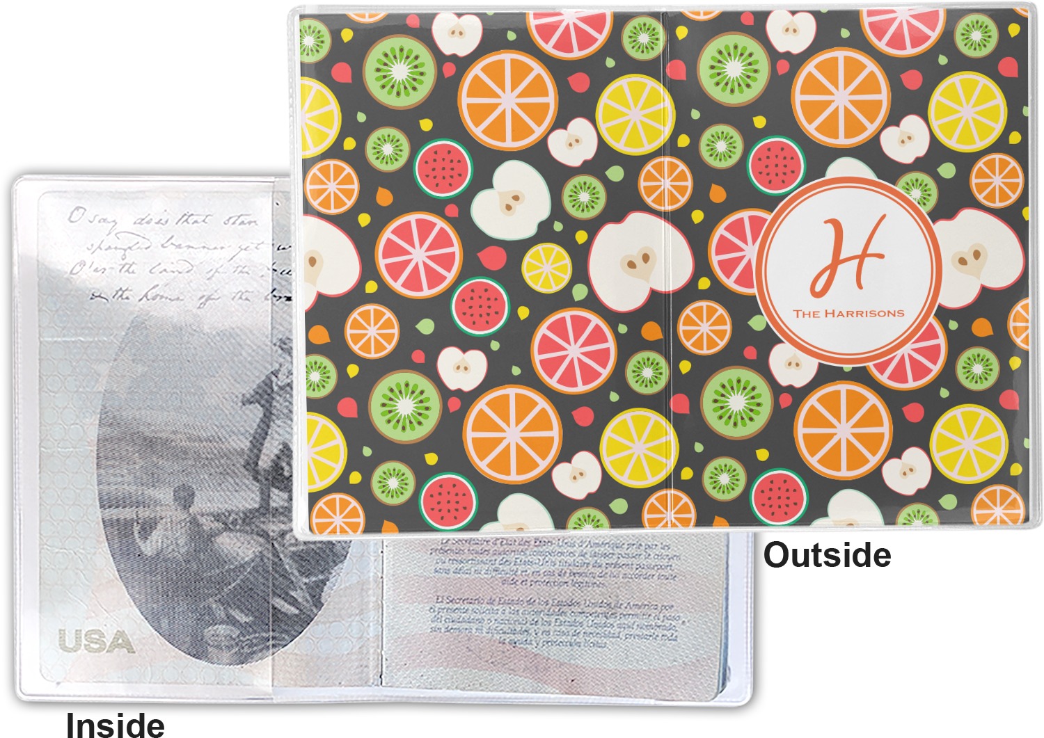This cover is made of a sturdy clear vinyl with a personalized vinyl insert inside. There is a large and a small pocket on either side to hold the covers of your passport easily and firmly. The passport holder is approximately 7.5" x 5.25", the perfect size to snugly fit your passport. This slim cover is the perfect way to protect your passport without being one more bulky item you have to carry.