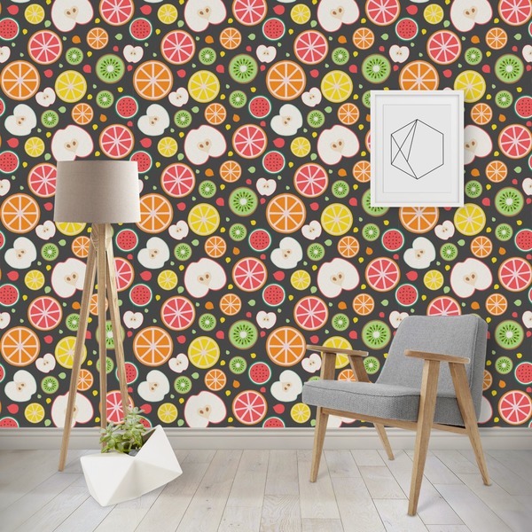 This beautiful Apples & Oranges design is part of our fruits and vegetables collection. This design features a plethora of fruits in multiple colors and sizes, sliced down the middle. The background on this design is dark gray; however you have the option of selecting any color.