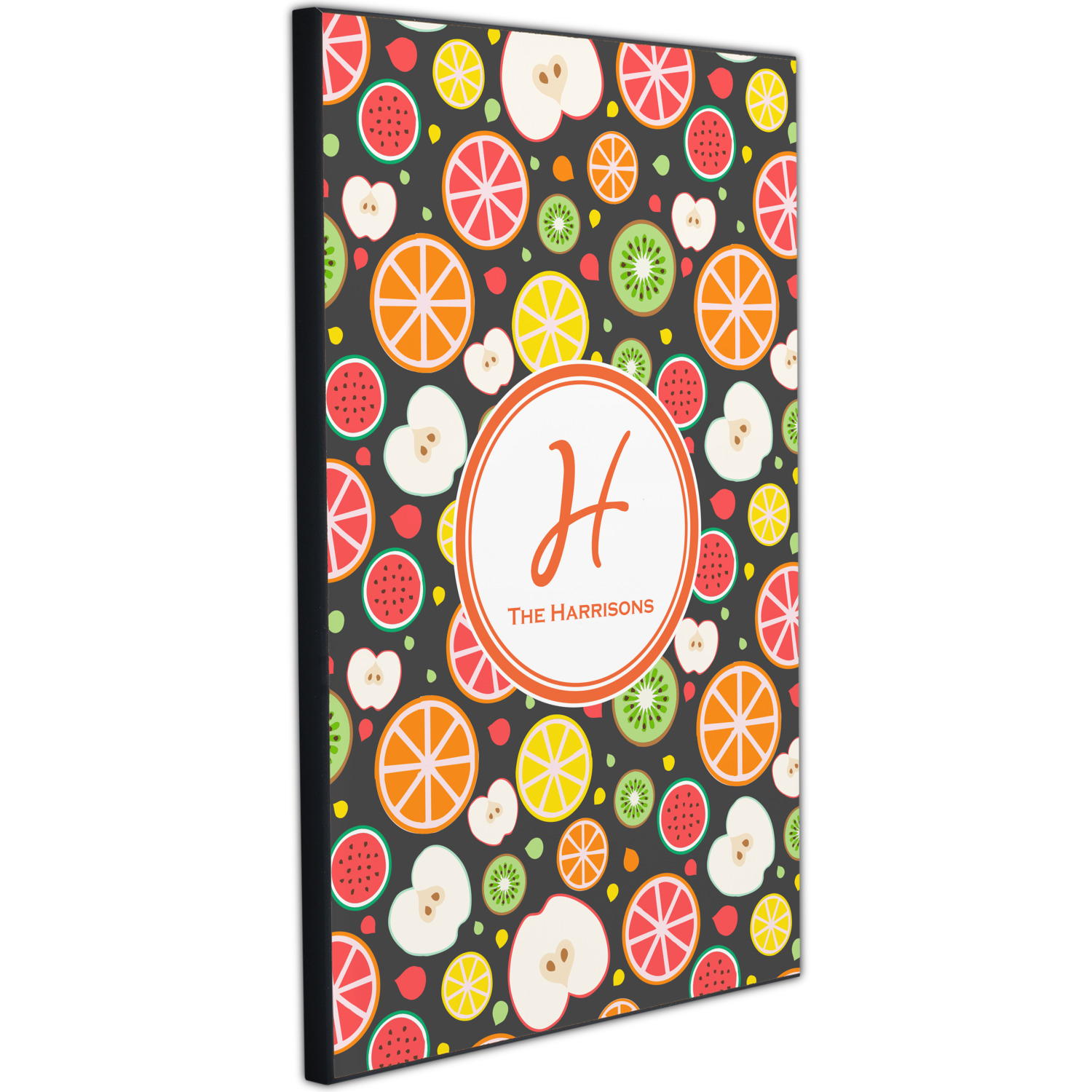 This beautiful Apples & Oranges design is part of our fruits and vegetables collection. This design features a plethora of fruits in multiple colors and sizes, sliced down the middle. The background on this design is dark gray; however you have the option of selecting any color.