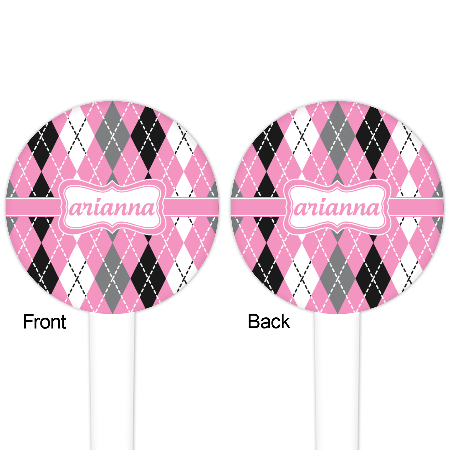 The round disc on these food & drink picks can be customized and personalized to your specifications. Your image will be printed in full color on one side or both sides. You can use the same image on both sides or use two different images.