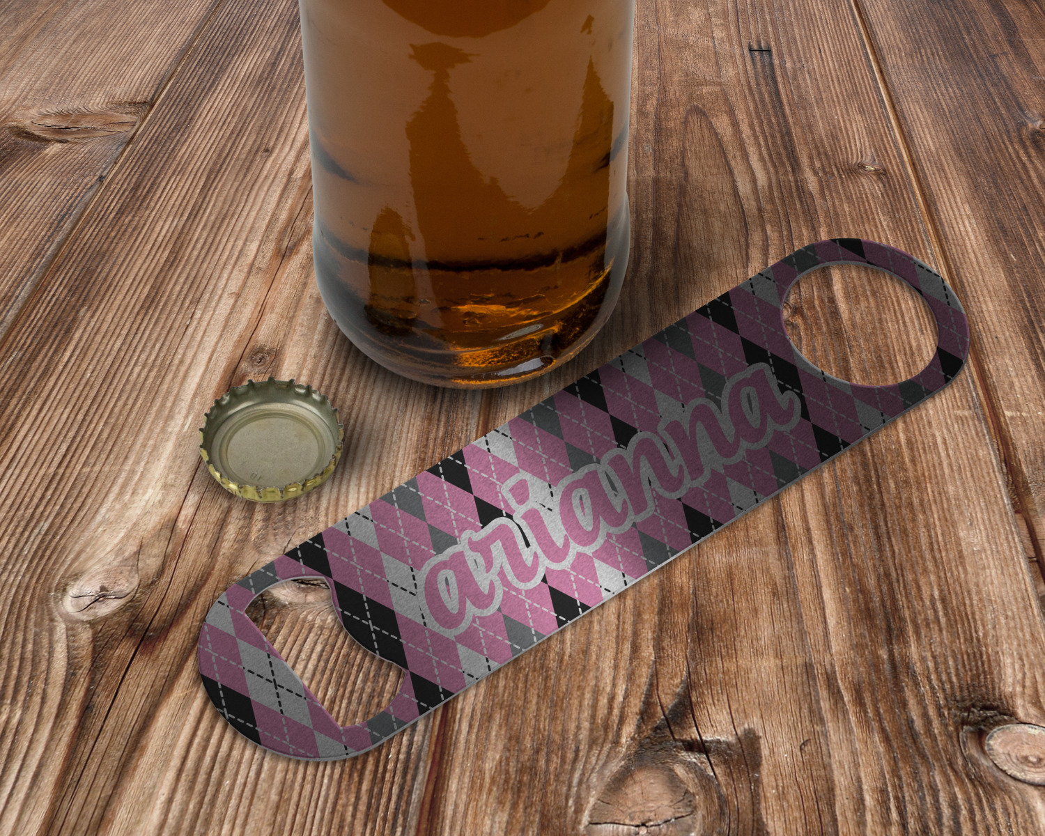 Stop struggling with the caps or your bottled beverages by purchasing one of our personalized bottle openers! These wrench-like custom bar blades are built to last. Customize one for your home's bar, or as a practical gift for a loved one!