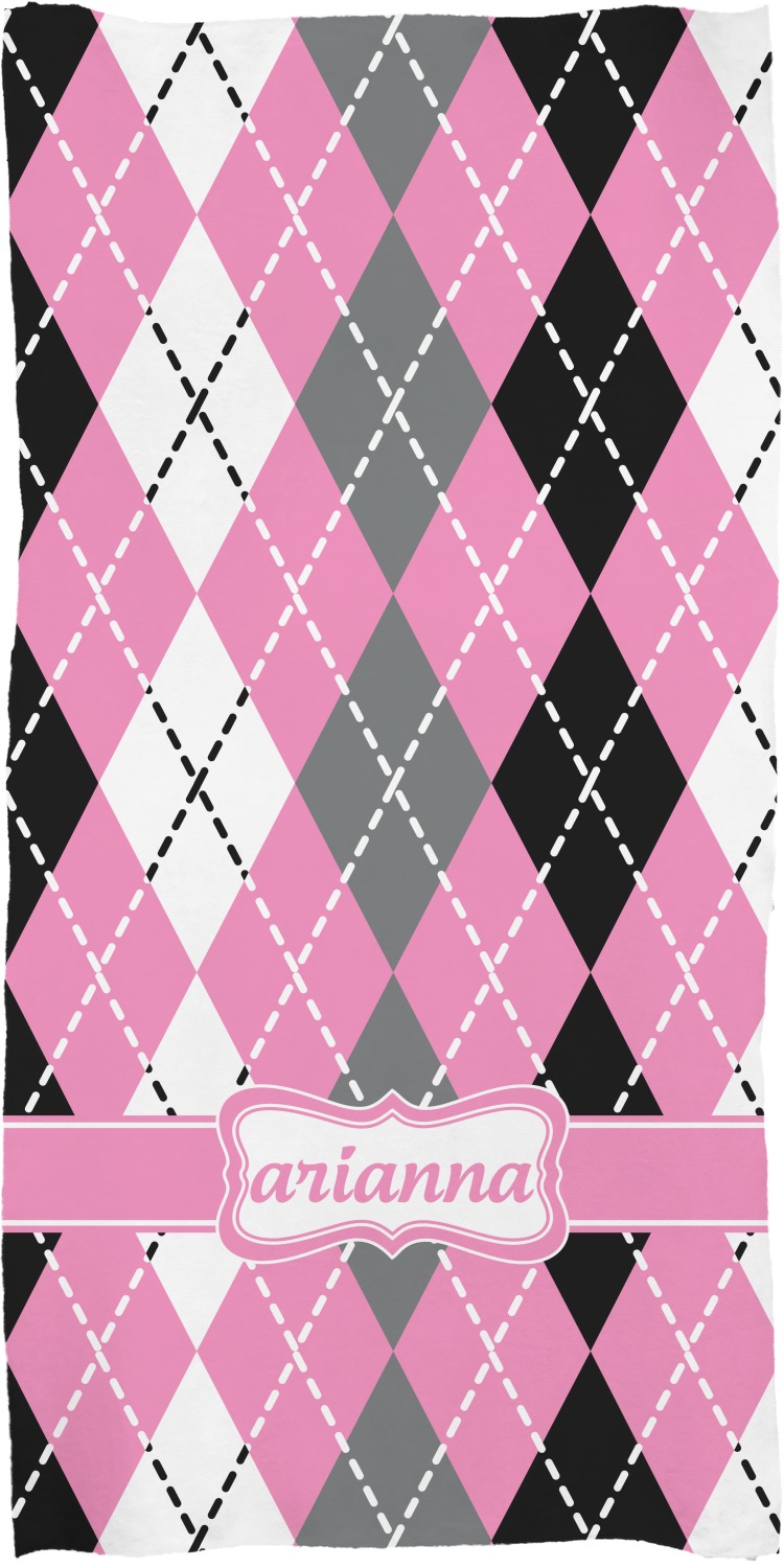 These customized bath towels are slightly larger than your standard towel and are the ideal size for wrapping around your body. They measure approximately 60" x 30". Your customization is displayed across the entire front face of the towel, while the back is white.