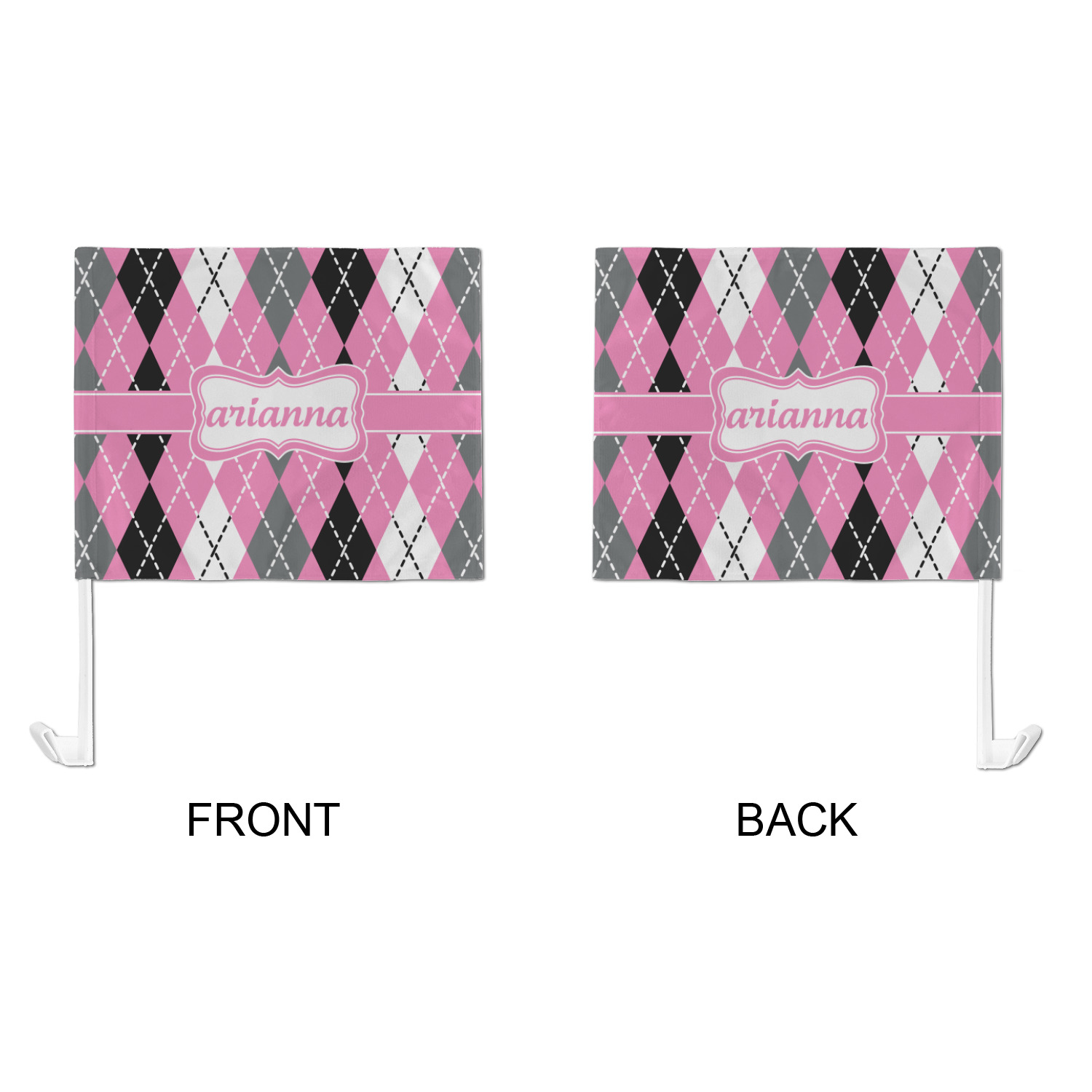 Our personalized flags are made from a durable, yet lightweight cloth that will proudly bear your logo or design of choice, while withstanding the outside elements. We have two size options - 8" x 11" and 11" x 15". Both come with a flag pole which includes a clip that secures the pole to the side window, whether it is rolled up or down. The flags are printed on both sides to display your design from all directions.