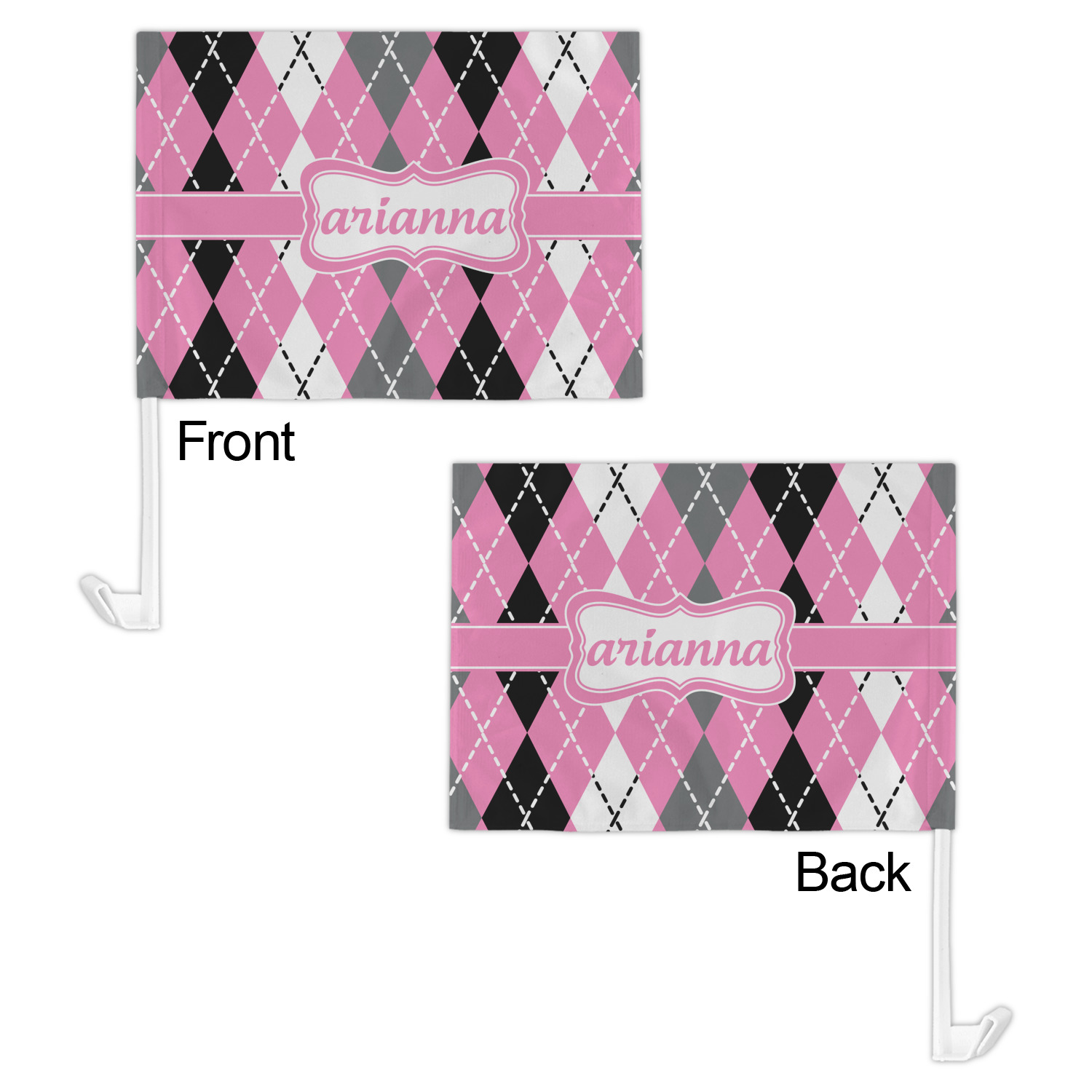 Our personalized flags are made from a durable, yet lightweight cloth that will proudly bear your logo or design of choice, while withstanding the outside elements. We have two size options - 8" x 11" and 11" x 15". Both come with a flag pole which includes a clip that secures the pole to the side window, whether it is rolled up or down. The flags are printed on both sides to display your design from all directions.