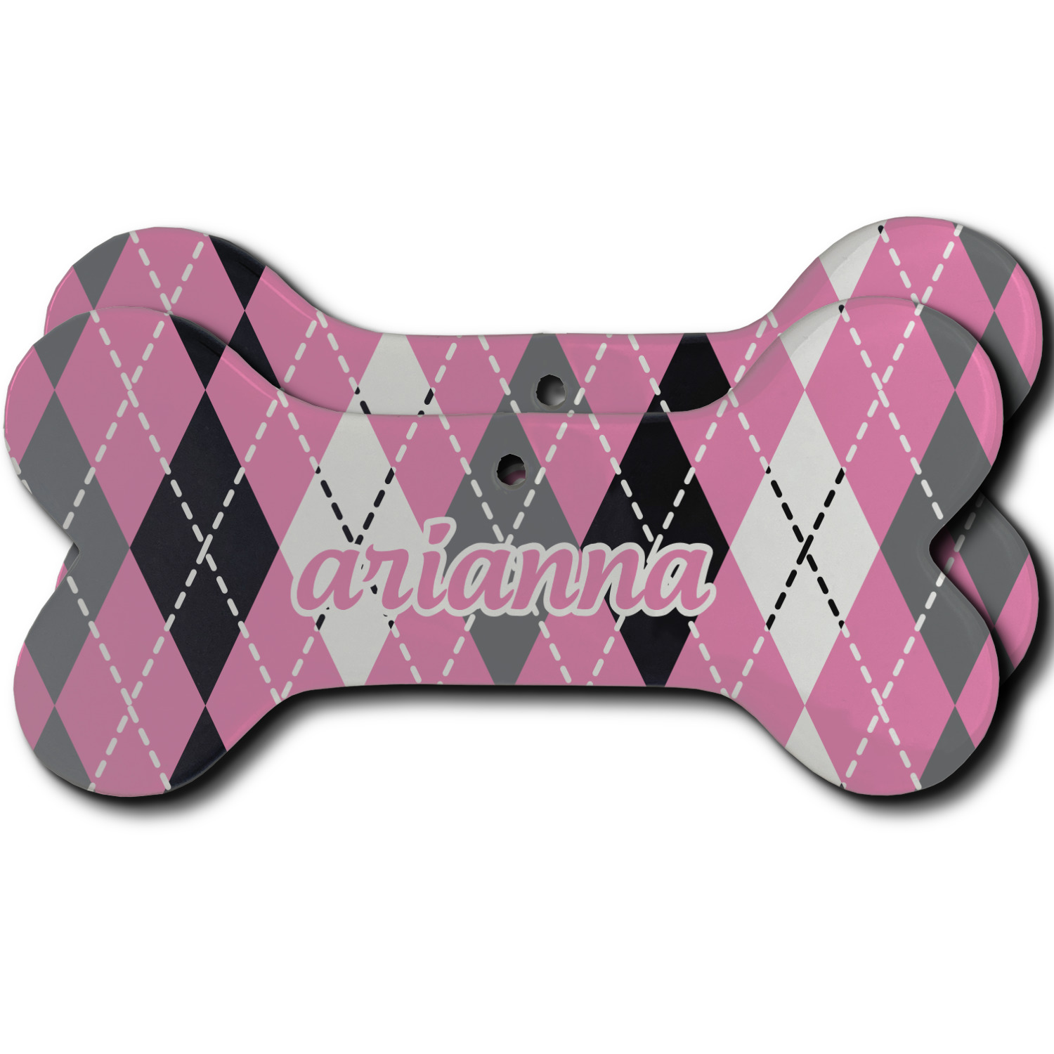Our dog Christmas ornaments are a ceramic material with a bone-shaped structure hung horizontally. We offer two printing styles to personalize your furry friend's ornament! Choose a one-sided printing, perfect for wall decor, memorial accessory, or doghouse nameplate! Create a double-sided ornament perfect for adorning the Christmas tree. Each dog bone ornament is approximately 4.75" x 2.25" and is printed here in the USA.