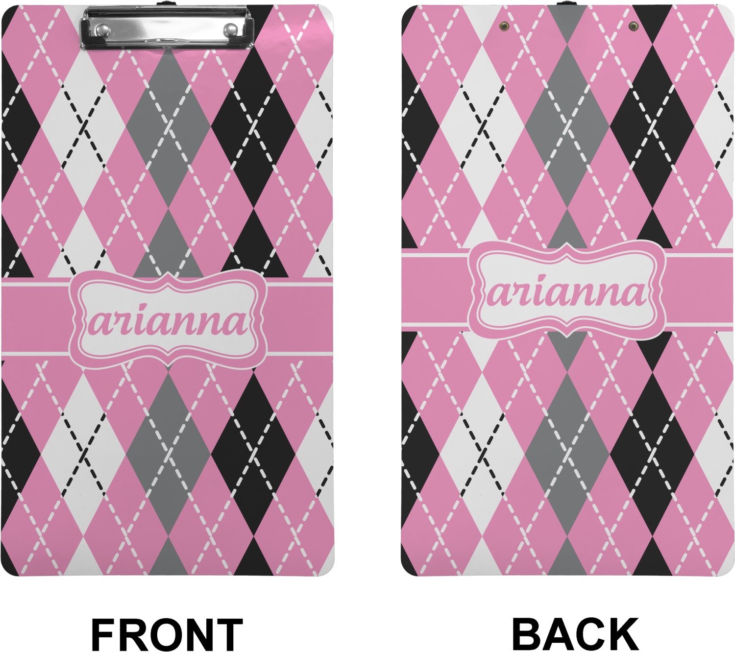 These custom clipboards are made from a strong hardboard and are coated with a glossy finish that accentuates the colors of your design. Alongside a retractable hook at its top, these decorative clipboards also feature sturdy clips to secure several sheets of paper. We sell these clipboards in two separate sizes. Our letter size measures at 12.5" L x 9" W, while our legal clipboard is approximately 15.5" L x 9" W. On both models, your personalization is printed on both sides of this clipboard and can be customized individually.