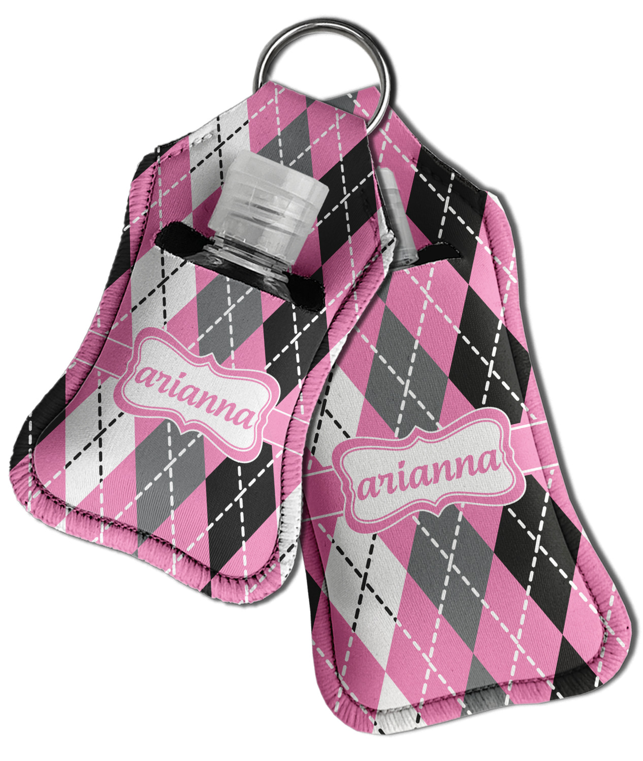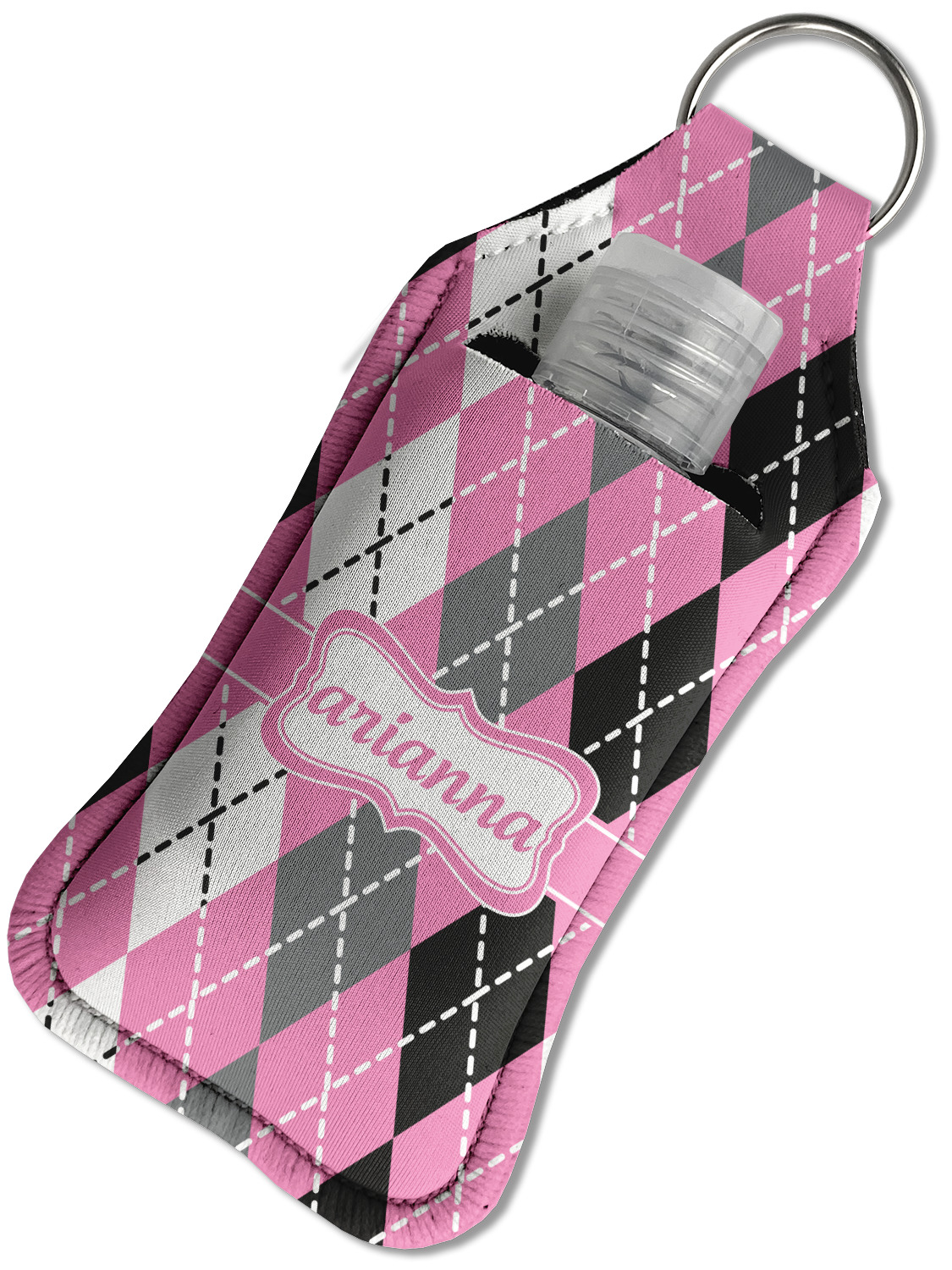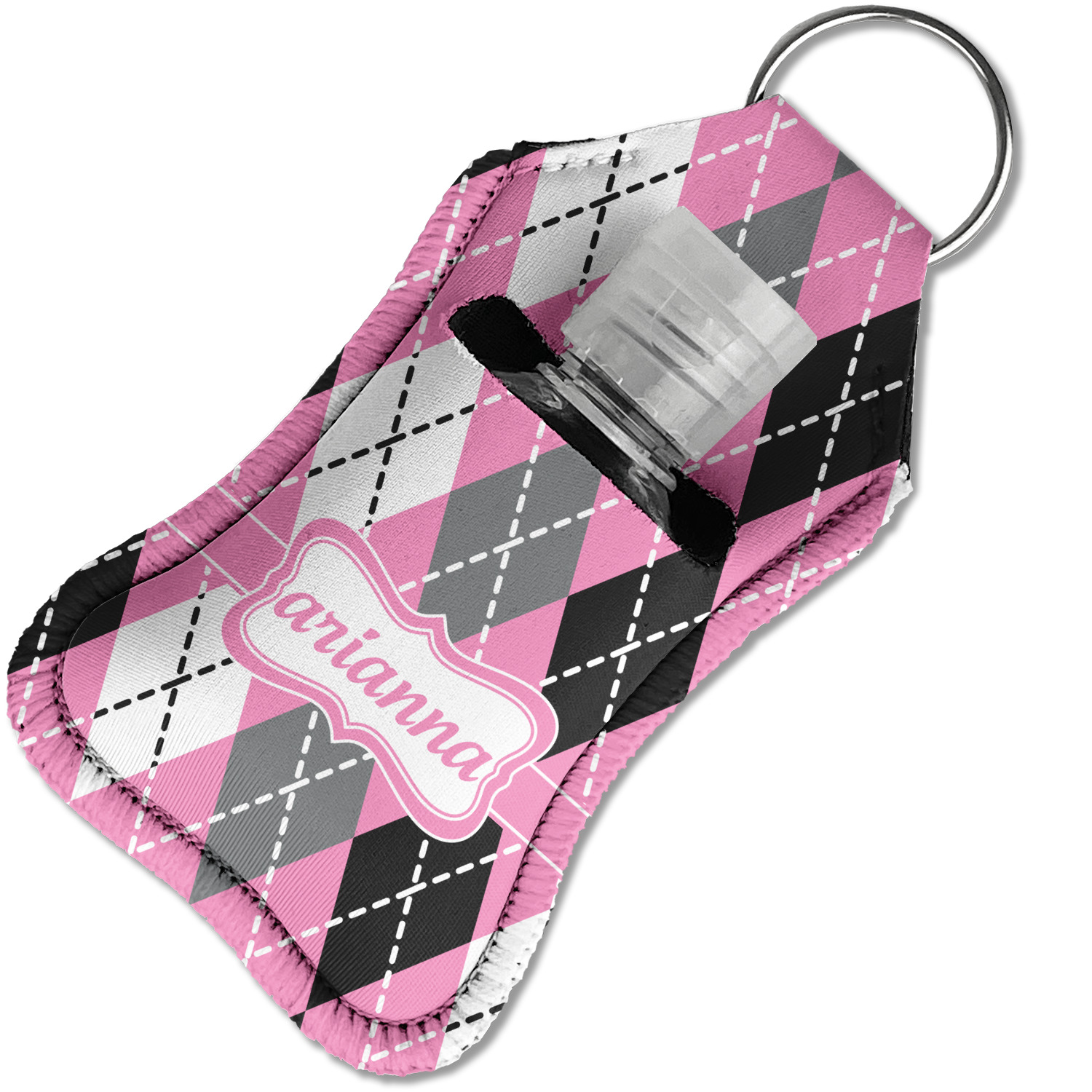 Each hand sanitizer holder comes with its own empty travel-sized, refillable hand sanitizer sure to fit snug in your customized sanitizer case! Our hand sanitizer cases are a durable, yet soft neoprene material sure to last any daily activities or travel agenda. Customize and personalize a hand sanitizer bottle holder with one of our two sizes - small (4.25" x 2.25") or large (5.5" x 2.5"). Each travel sanitizer holder comes with a keyring for attachment on bags, keys, or more!
