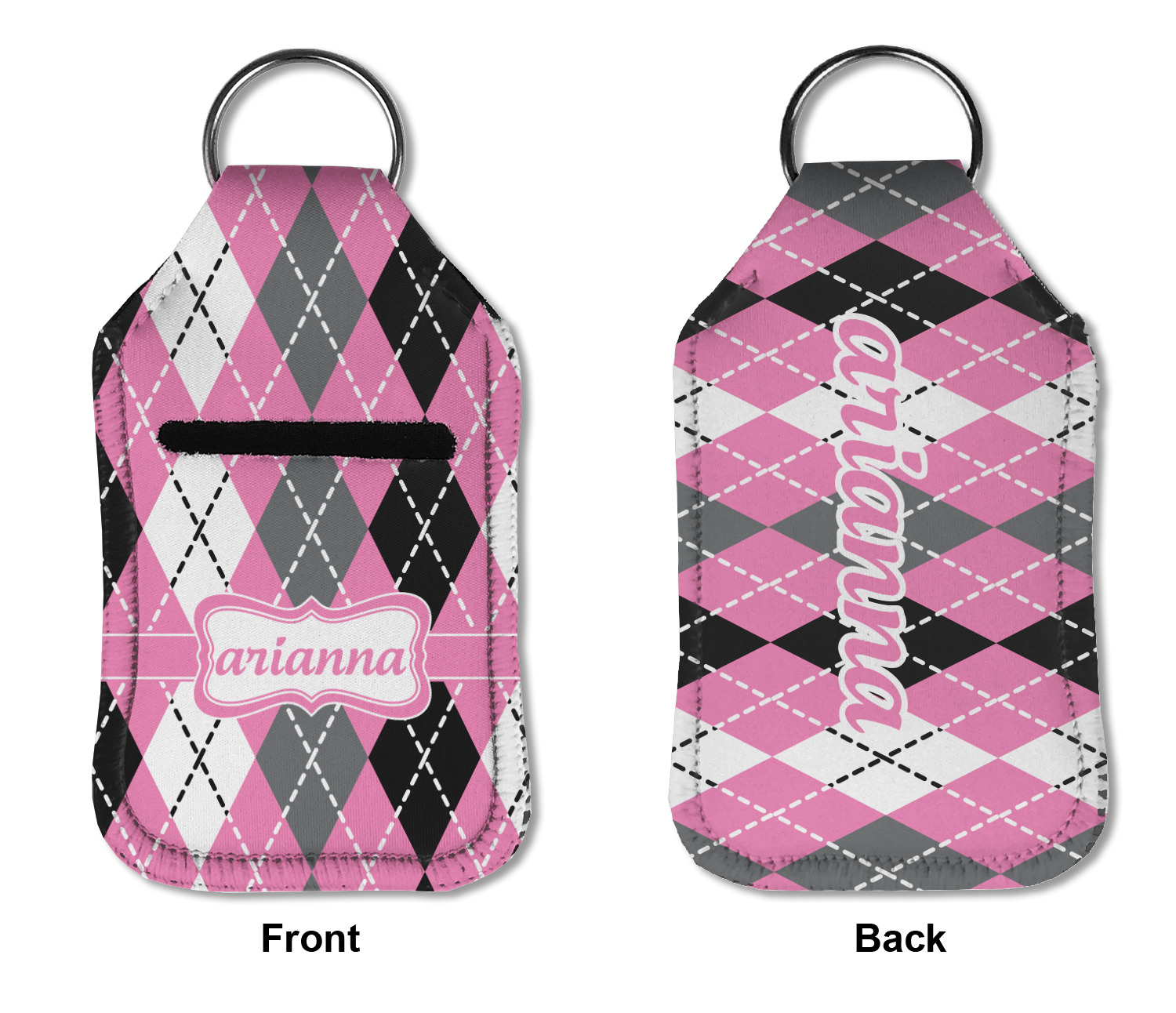 Each hand sanitizer holder comes with its own empty travel-sized, refillable hand sanitizer sure to fit snug in your customized sanitizer case! Our hand sanitizer cases are a durable, yet soft neoprene material sure to last any daily activities or travel agenda. Customize and personalize a hand sanitizer bottle holder with one of our two sizes - small (4.25" x 2.25") or large (5.5" x 2.5"). Each travel sanitizer holder comes with a keyring for attachment on bags, keys, or more!