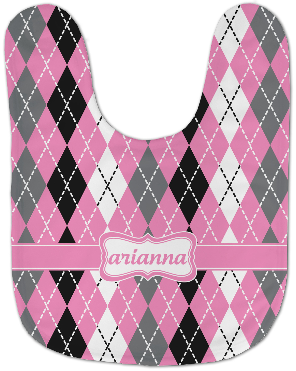 Made of soft polyester, each customizable bib hugs comfortably around the neck to catch every drip and drool. Each bib design is printed with baby-safe ink and finished with a secure stitch pattern and velcro clasp. We carry two customizable bib styles -Microfiber Velour and Jersey Knit.