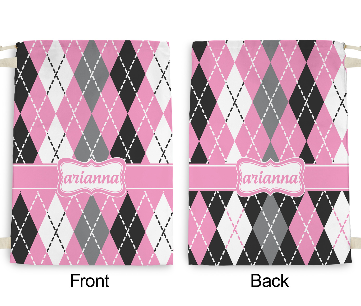Carry your laundry in style with these customized laundry bags. Available in two sizes, featuring a natural colored woven strap and a cinch cord, these bags hold a lot of clothes or anything else you want to fit in them.