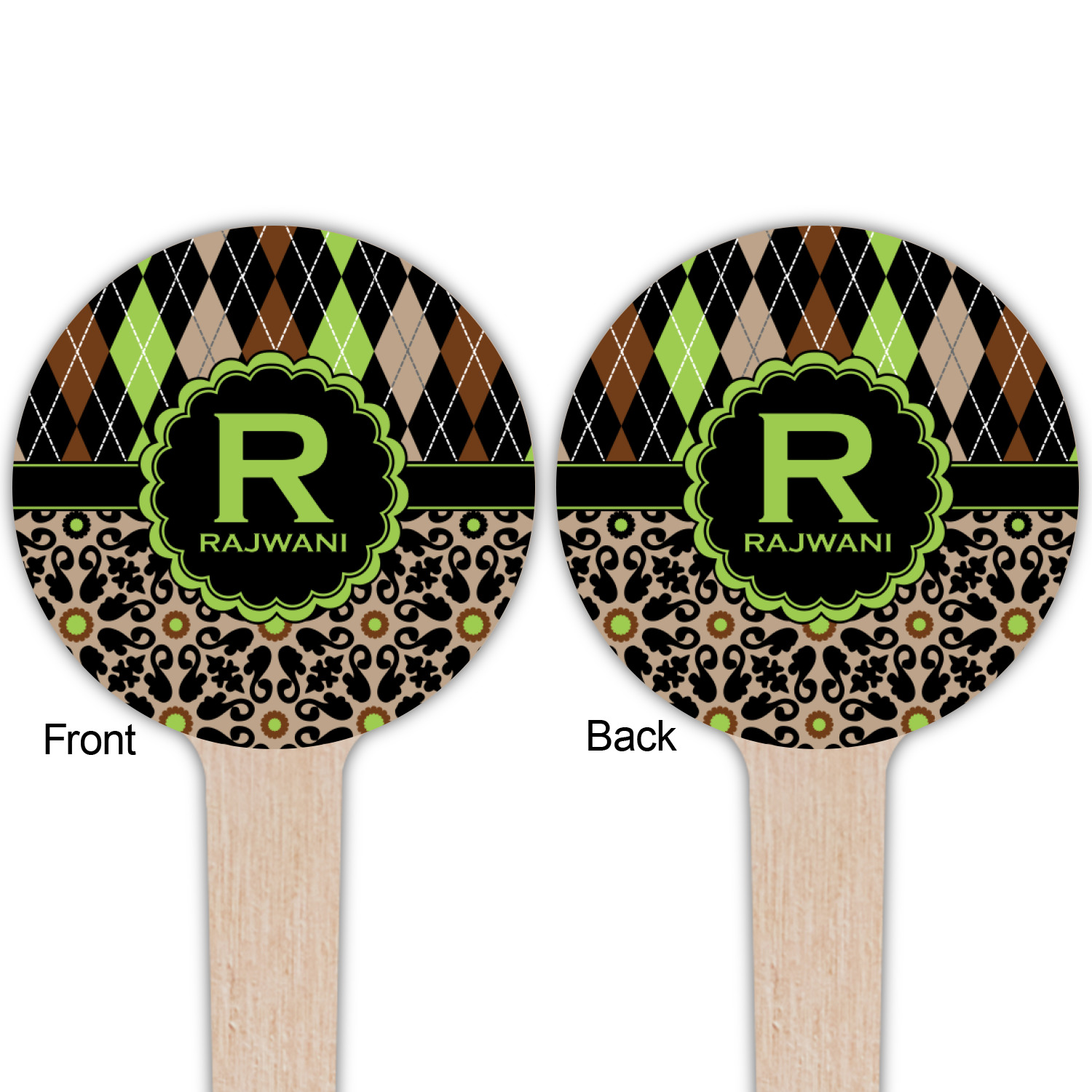 Feminine and masculine collide with this gorgeous design. The top of the design is a contrasting harlequin print in the colors of black, brown, tan, and lime green. The bottom of the design offers a fun girly flair in an abstract pattern in the same colors as the harlequin pattern set against a tan background to create a floral pattern
