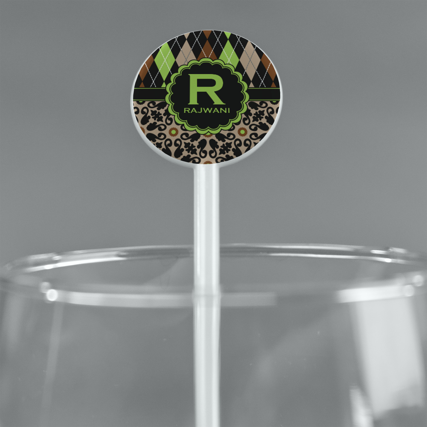 A wide band of black using the lime green to trim the band pulls the design together. A feminine scalloped black circle label that is trimmed in double rows of lime green will provide the focal point for personalization of your choice.