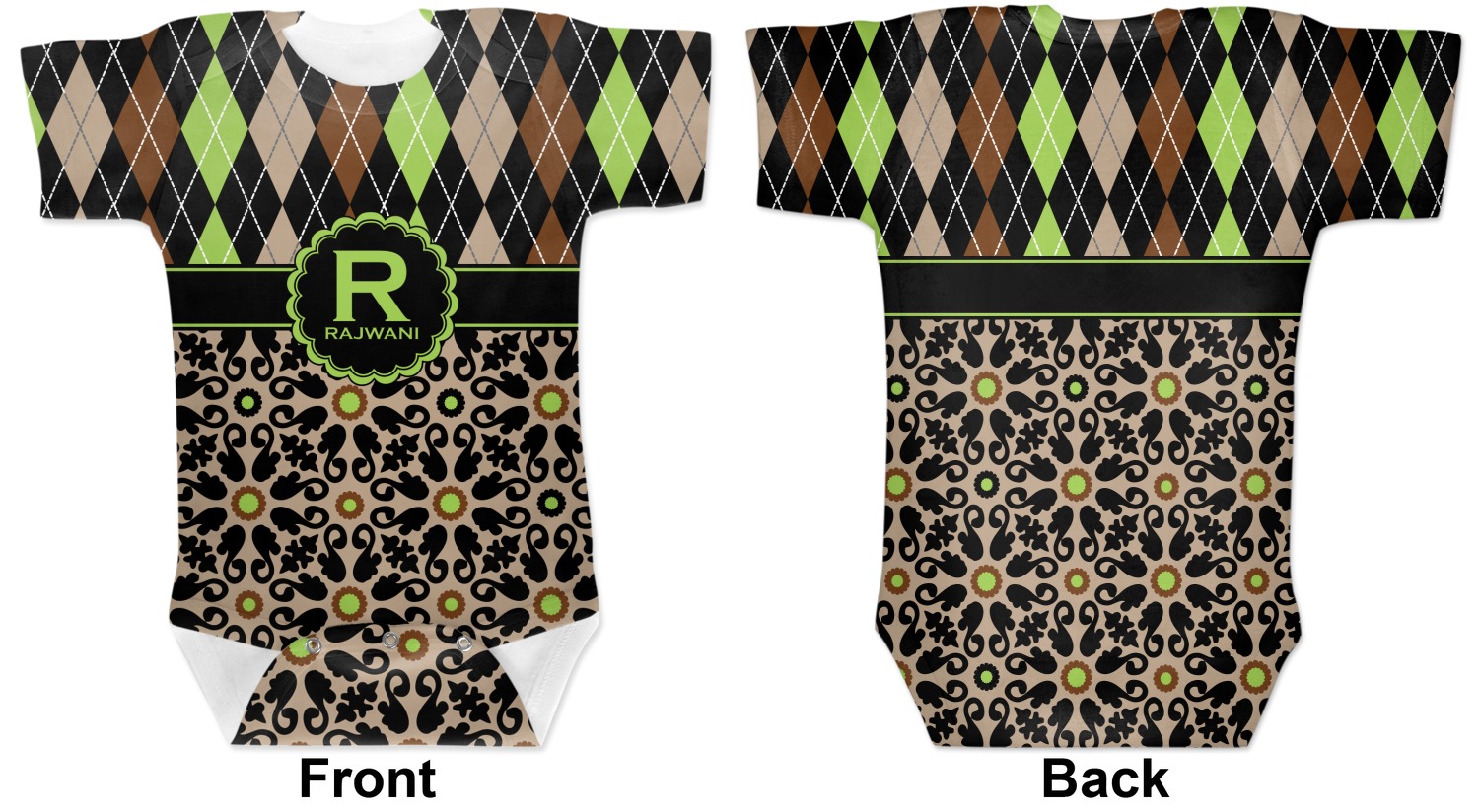 These cute baby bodysuits are made of stretchy, soft-to-the-touch polyester, making them very comfortable for your baby. These baby bodysuits also have snaps on the bottom to give easy access during changing times. Your personalization covers the entirety of this custom baby bodysuit, but the interior is white in color. As these are unisex baby bodysuits, they will work perfectly as baby girl bodysuits and baby boy bodysuits!