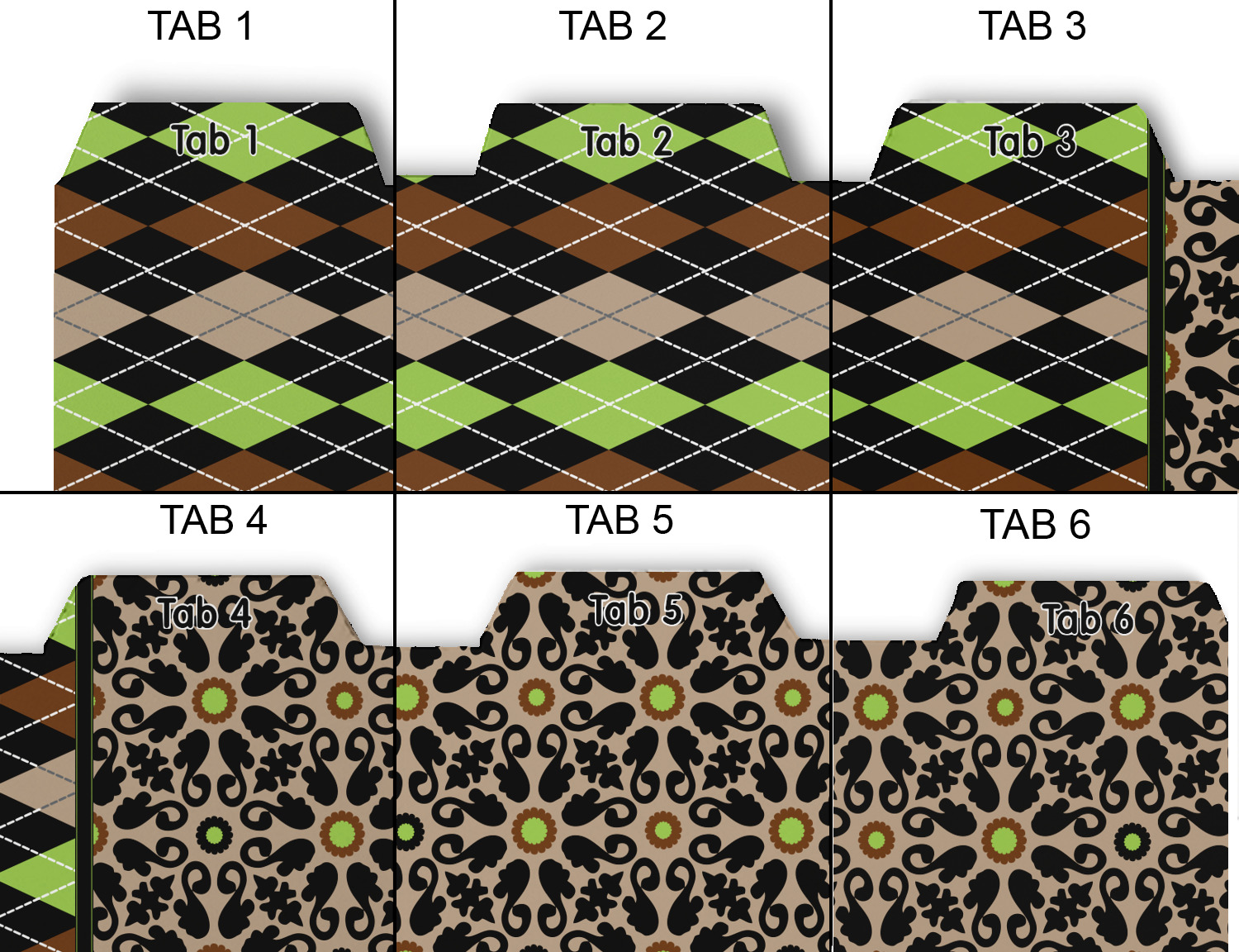 Whether you use binders at school or at work, we have designs to suit all of them. Available in 5 or 6 tab sets, you are sure to find a set to suit your needs. The back of each one is white and can be used to take notes, write vital information on, etc.