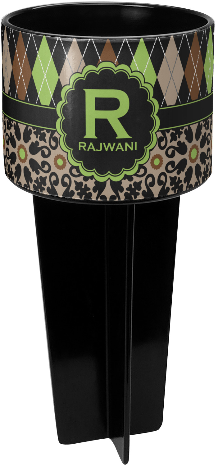 This cup holder has a large stake at its bottom that anchors it to the sand or ground below, while the cup holder rests above the stake. The entire drink holder is made of durable plastic and displays your customization around the cup holder portion. We sell these personalized beach spikers in two different colors: black and white.