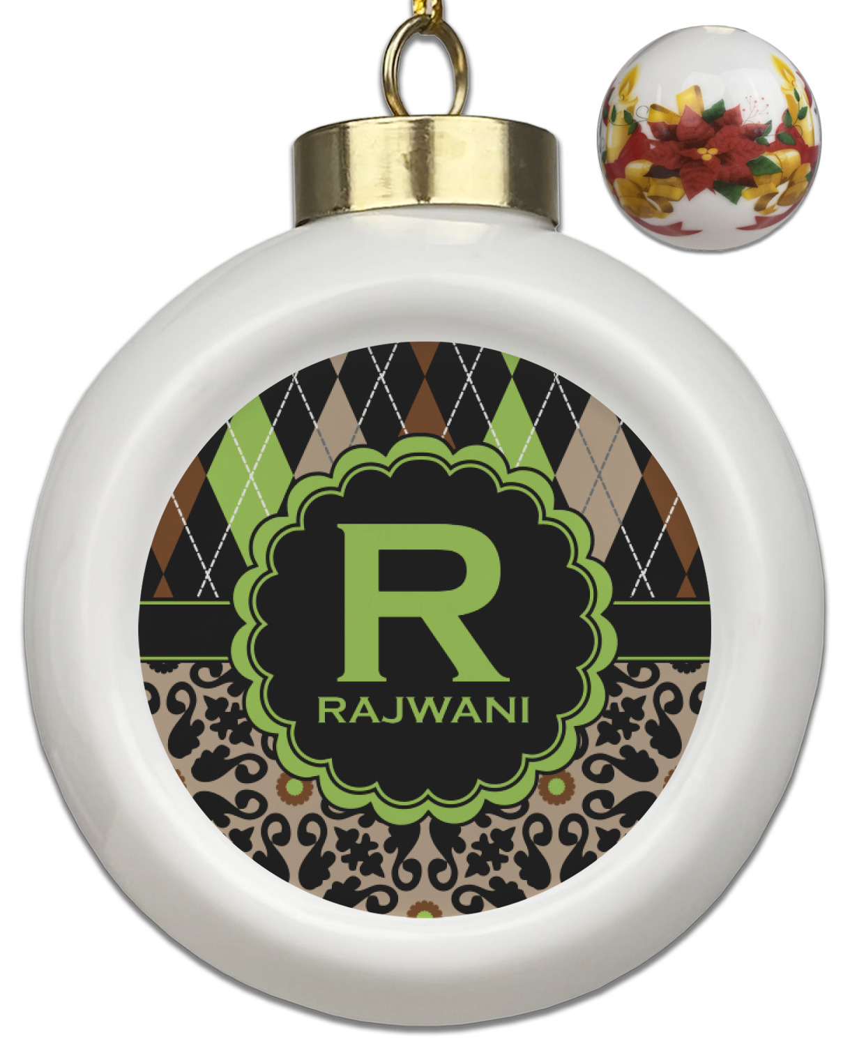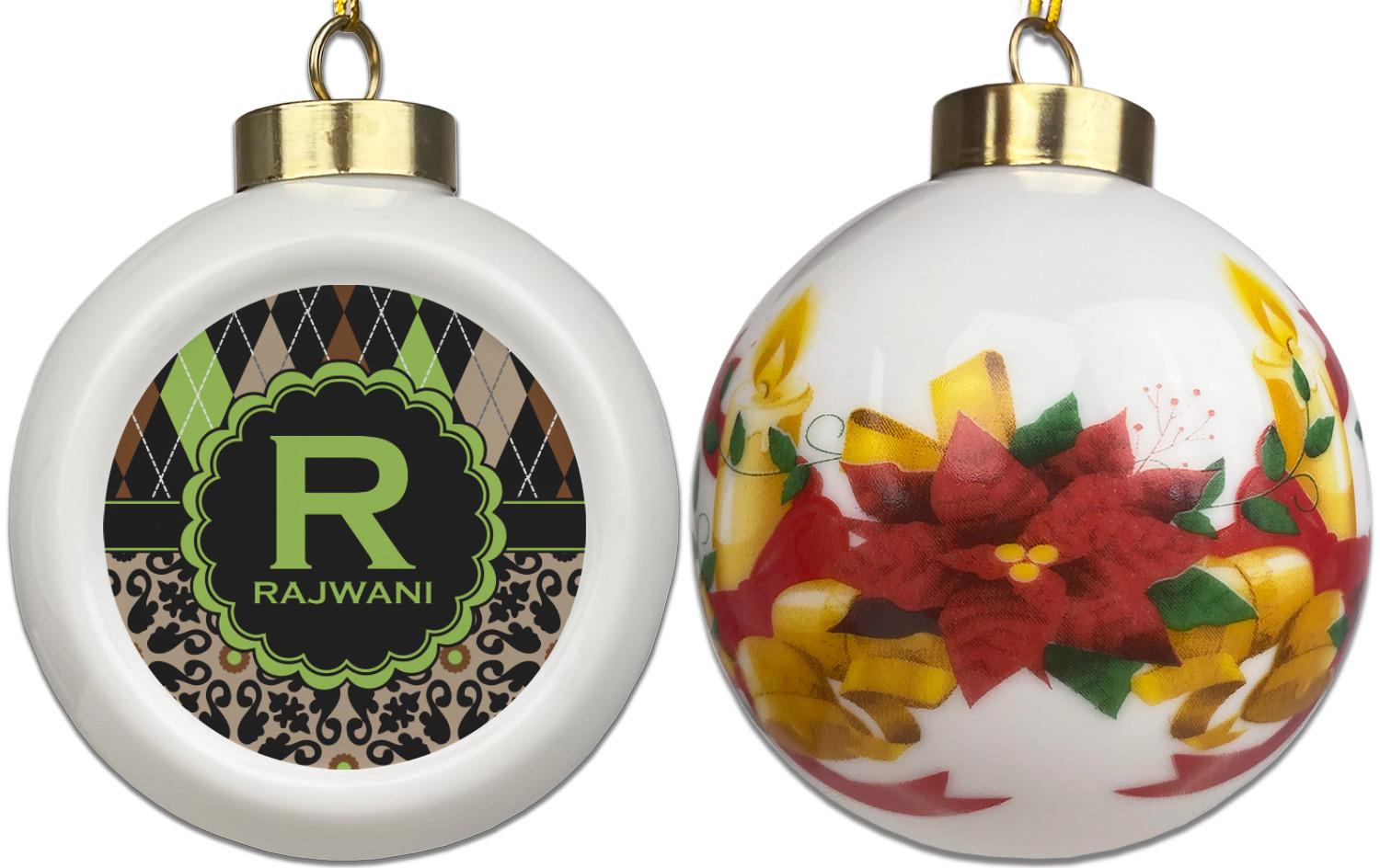Our Christmas ornaments are a unique ceramic ball shape with a twist as it has a flat face to display your custom design! Select from one of our two design types - Christmas Tree or Poinsettia Garland - to adorn the curved back of your personal design. Each ornament measures 3H x 2.5W x 2D accompanied with a gold string accent for finishing touches to hang on your beautiful Christmas tree!