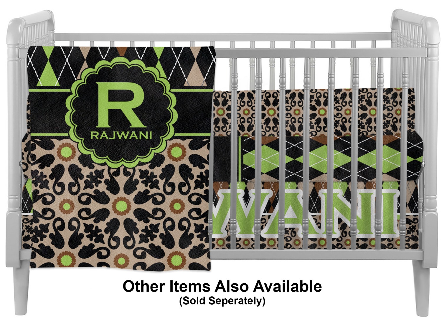 Interested in adding more personalized items to your baby's crib bedding set? Explore our Baby and Toddler department, where you'll find an array of customizable products for your child! We offer crib fitted sheets, nightlights, and curtains for your baby's nursery. Looking to match your own comforter set with your child's? We even offer duvet covers and comforters for adults, in a variety of sizes!