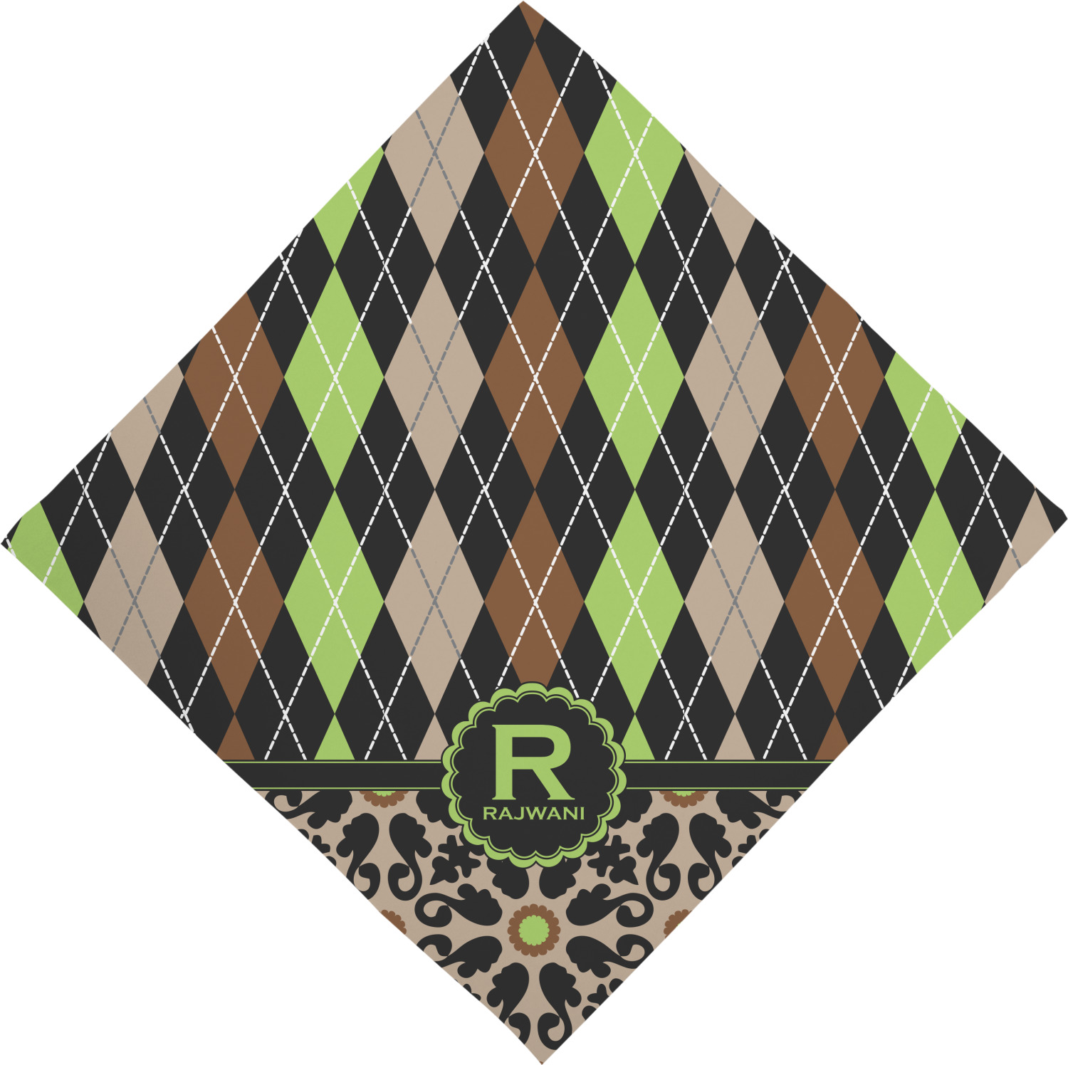 This beautiful pet bandana really is the perfect accessory. It is made from a silky feeling polyester and measures at approximately 23" x 23". Your personalization will be printed on a diagonal, so that you are able to read the personalization when folded into a triangle. This bandana fits best on large dogs, but can be folded smaller if there is no personalized text to fit smaller pets.