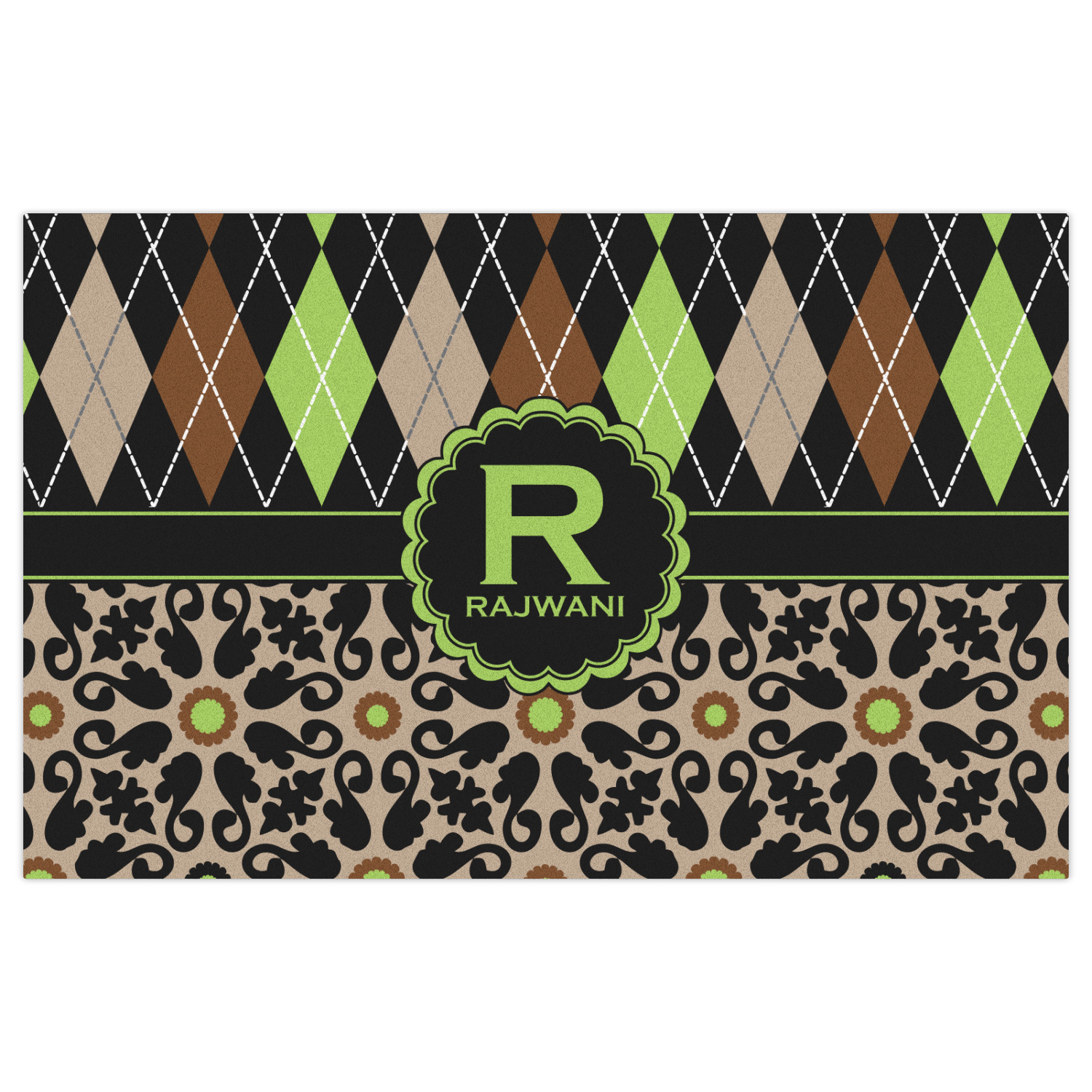 Feminine and masculine collide with this gorgeous design. The top of the design is a contrasting harlequin print in the colors of black, brown, tan, and lime green. The bottom of the design offers a fun girly flair in an abstract pattern in the same colors as the harlequin pattern set against a tan background to create a floral pattern