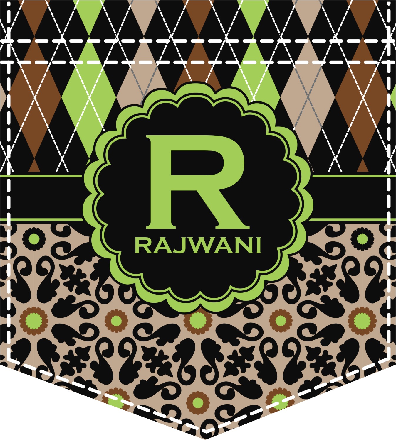 Our no sew faux pockets are easily customized by you. Our customization system allows you to change the personalization from a name to a monogram or to a name & initial or remove it completely. You can also change the colors, fonts, graphics, backgrounds etc. You can also upload your own picture / image or logo or we can custom create one for you or your event.