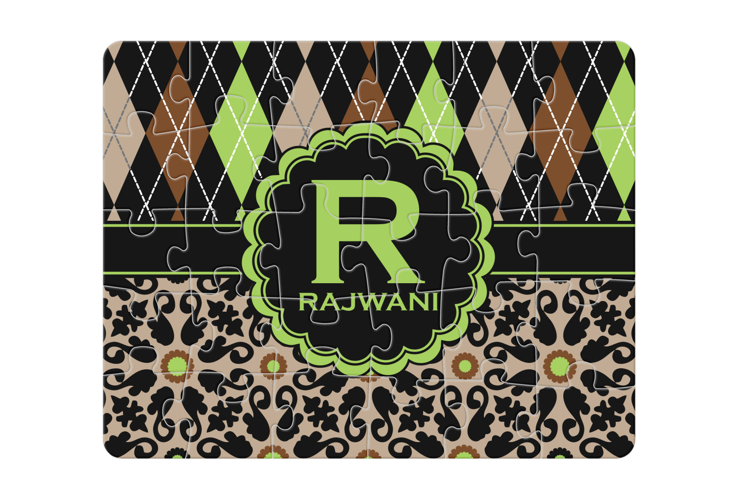 You can also upload your logo or art that you or your kids drew. To create more challenging jigsaw puzzles, you can create a pattern from with your logo or artwork. You can also add other elements such as text or personalization.