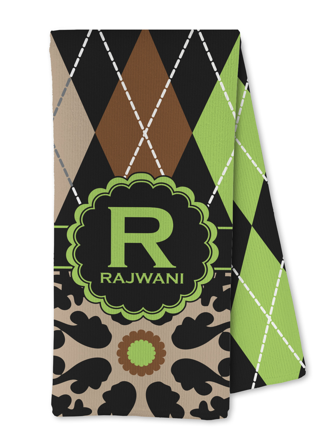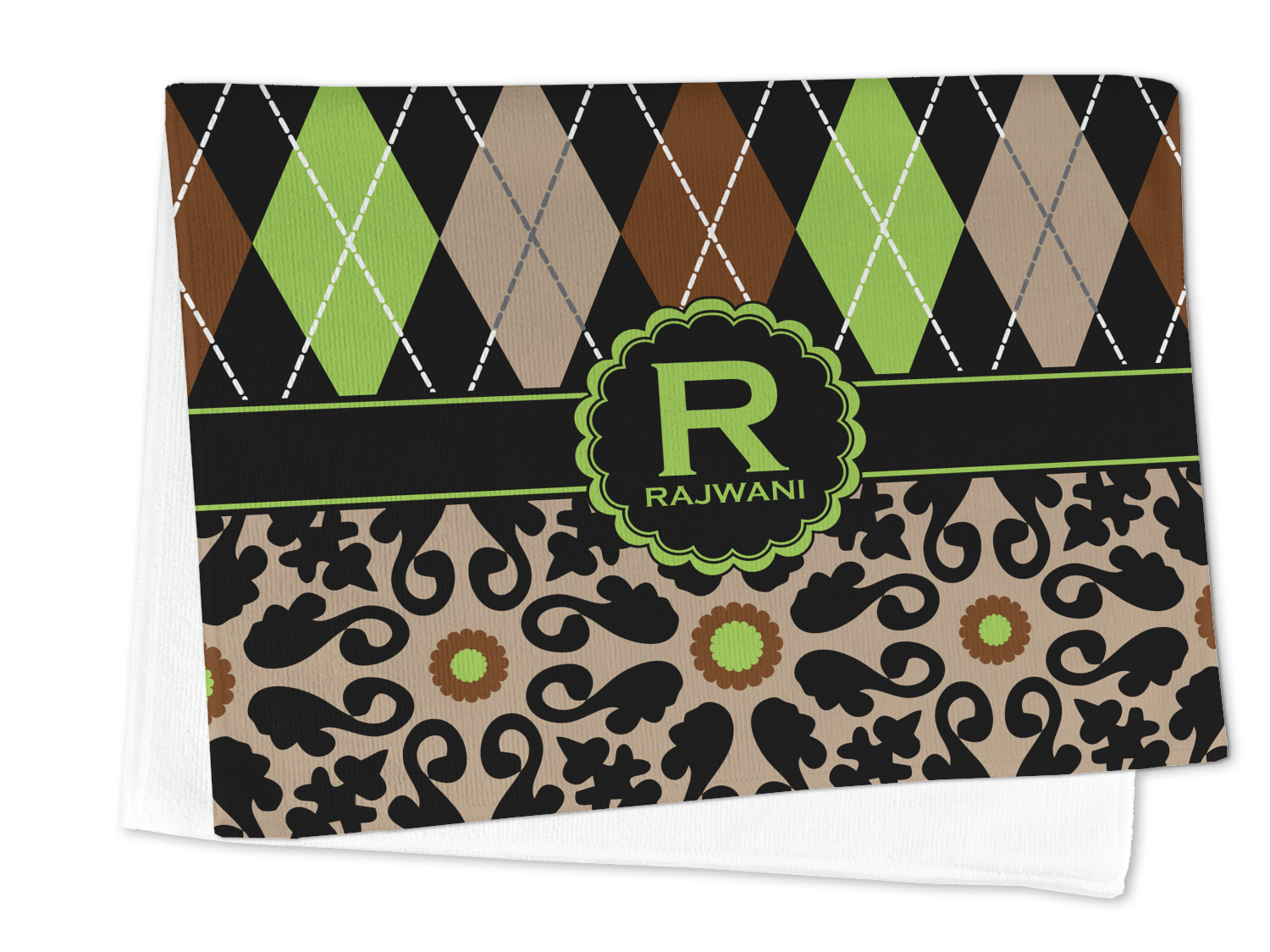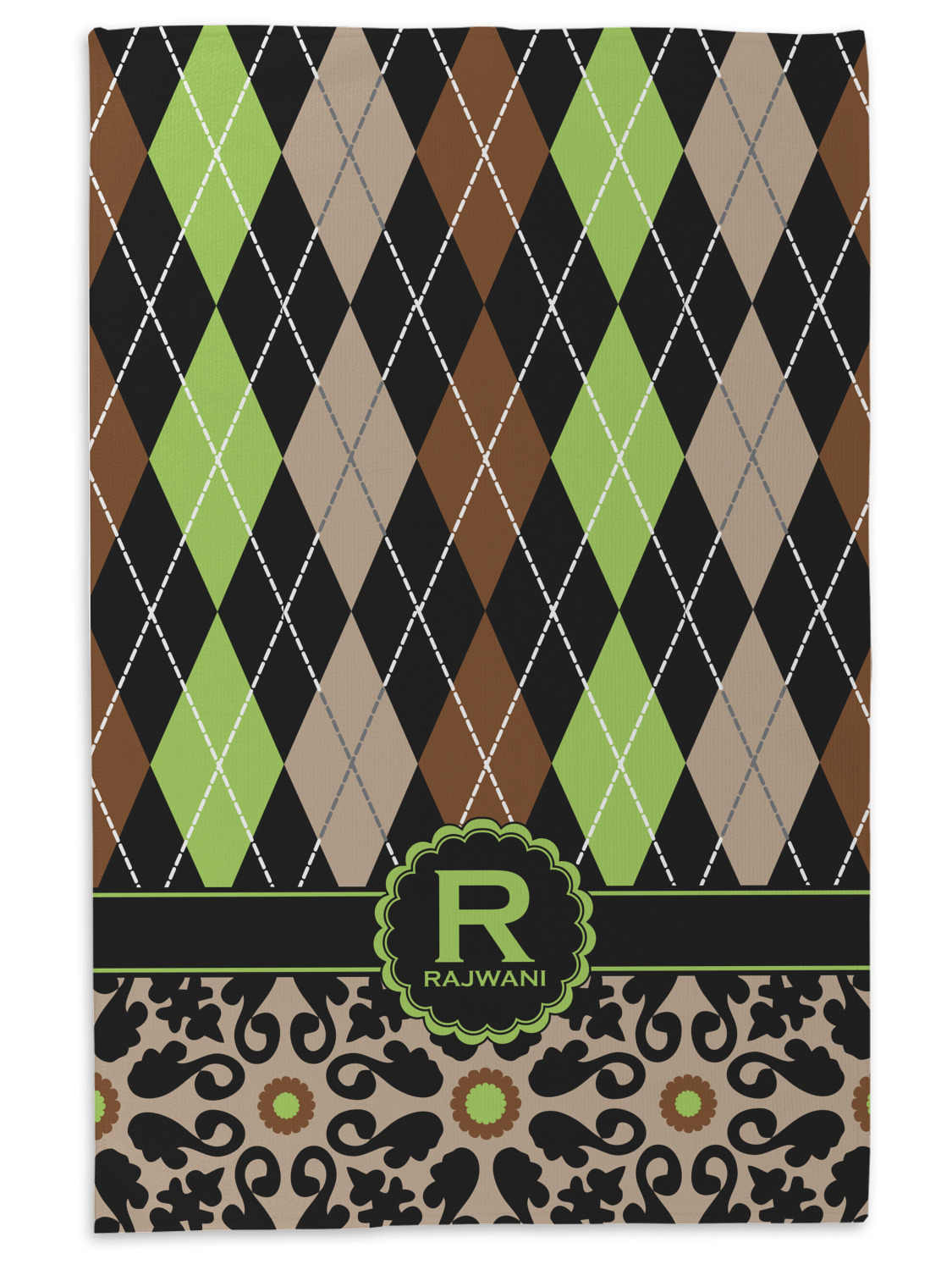 Feminine and masculine collide with this gorgeous design. The top of the design is a contrasting harlequin print in the colors of black, brown, tan, and lime green. The bottom of the design offers a fun girly flair in an abstract pattern in the same colors as the harlequin pattern set against a tan background to create a floral pattern