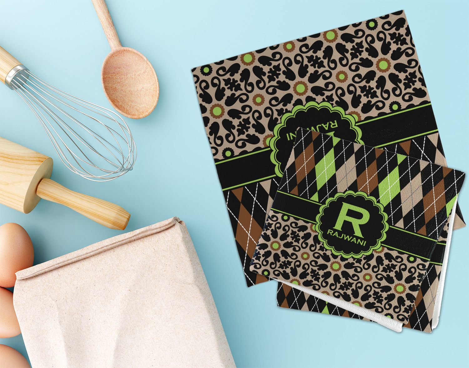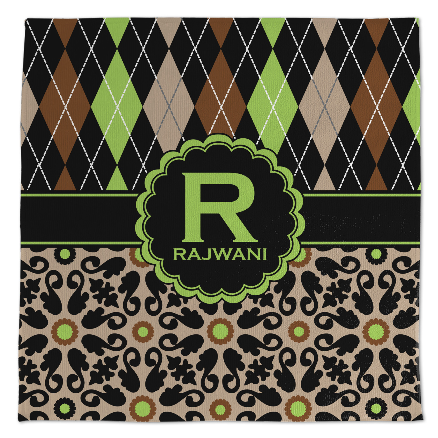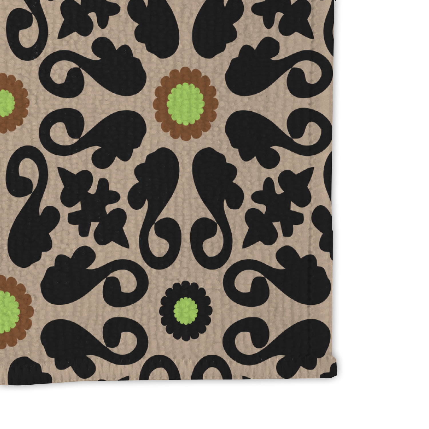 Feminine and masculine collide with this gorgeous design. The top of the design is a contrasting harlequin print in the colors of black, brown, tan, and lime green. The bottom of the design offers a fun girly flair in an abstract pattern in the same colors as the harlequin pattern set against a tan background to create a floral pattern