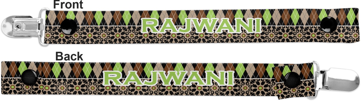 This personalized pacifier clip is the ideal size and measures at approximately 7.5 inches in length, when either end is snapped closed. On one end, you'll find a snap button. This button of your baby's pacifier holder is what can be attached to their pacifier to hold is securely in place. Simply open the snap, slip it through the pacifier opening, and snap it back into place. On the opposite end of this baby pacifier holder, you'll find a metal clip that can secure to a baby's collar or sleeve. This clip ensures that the strap stays in place, and that your baby's pacifier is always on hand.